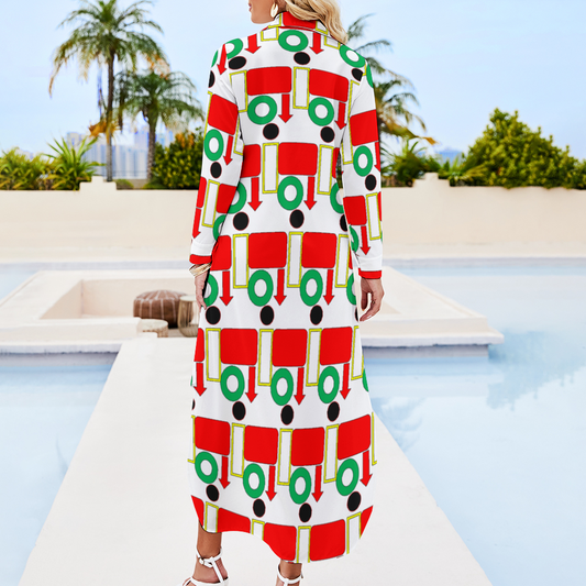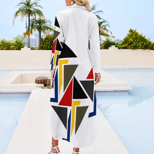 Custom Women's Long Sleeves Shirt Dress Button Up Slit Skirt