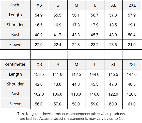 | Sleeve | 22.0 | 22.4 | 22.8 | 23.2 | 23.6 | 24.0 |