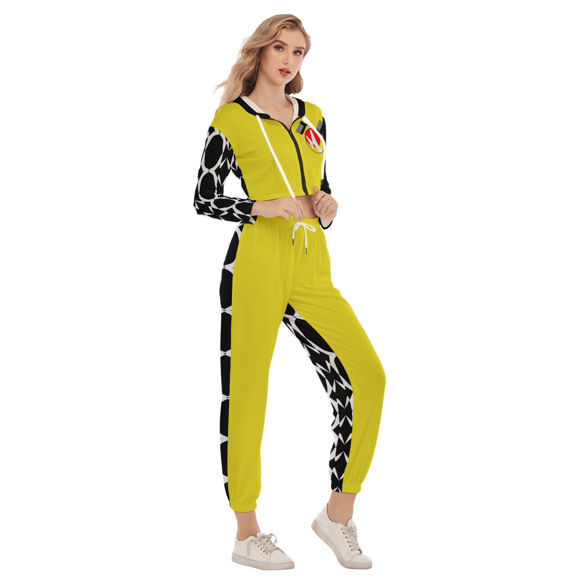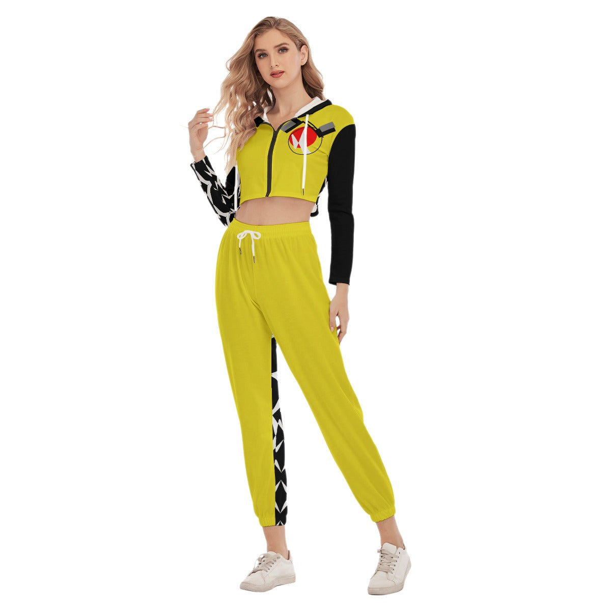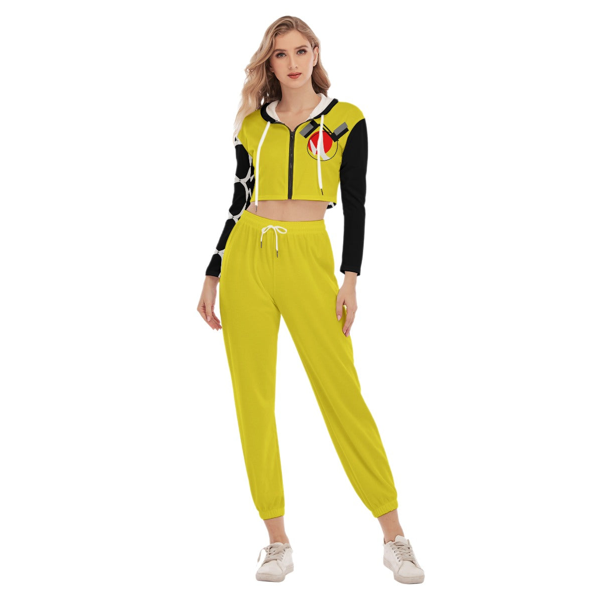 Origen Destination Symbol-inspired Women's Yellow Crop Hoodie Sports Jumpsuit