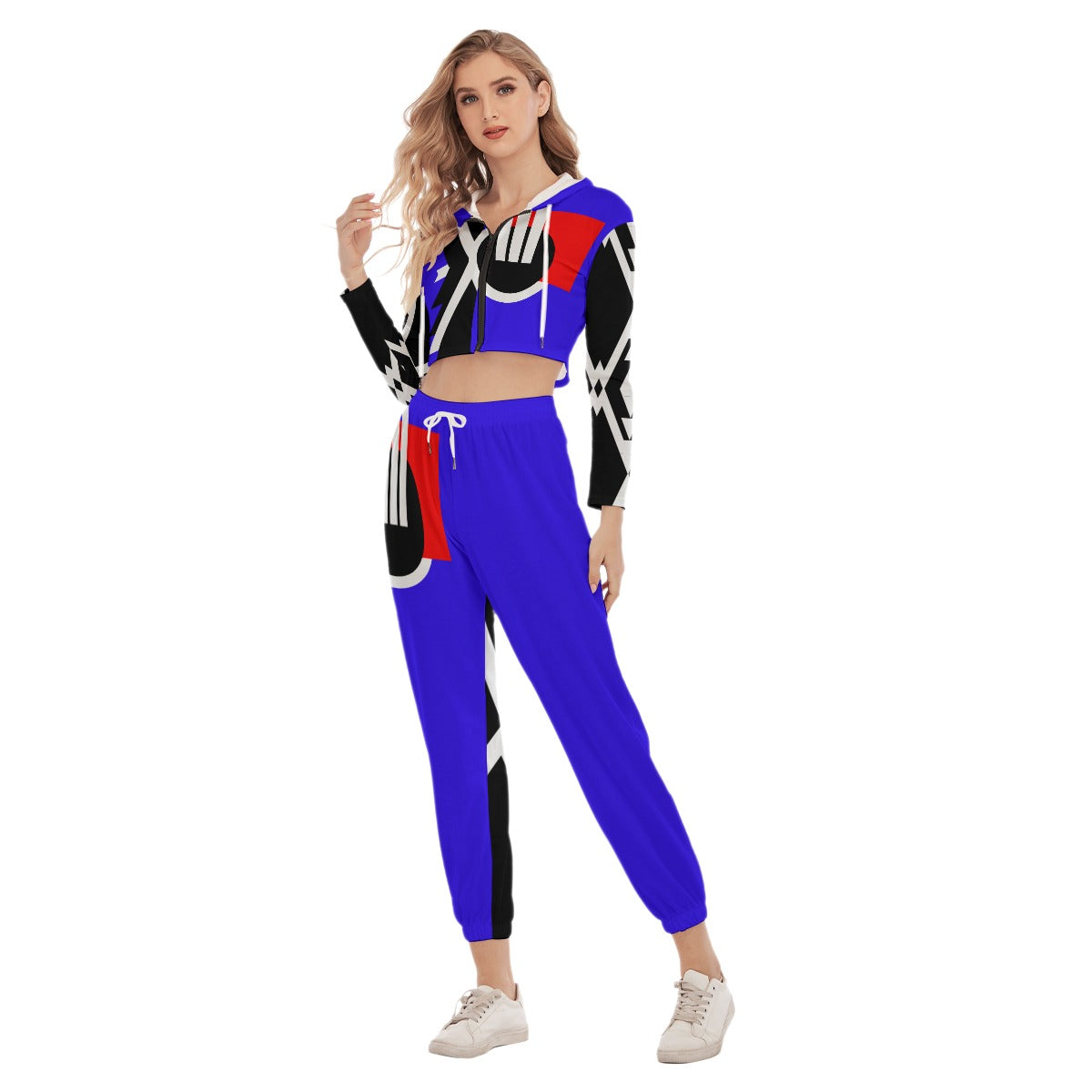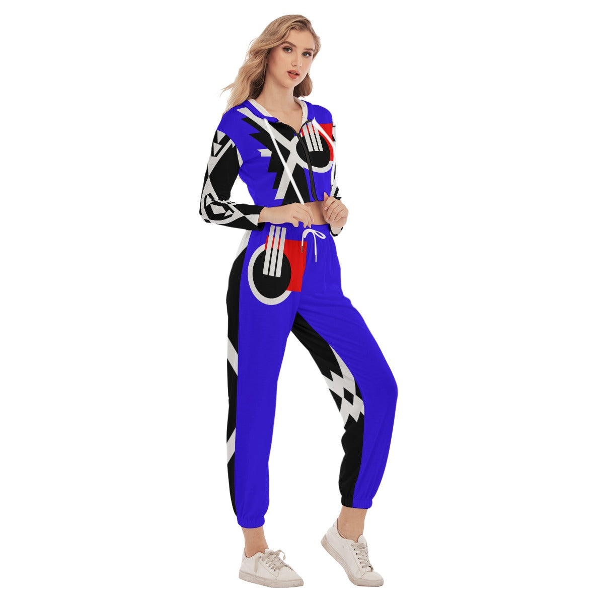 Origen Destination Symbol-inspired Women's Vibrant Blue Crop Hoodie Jumpsuit