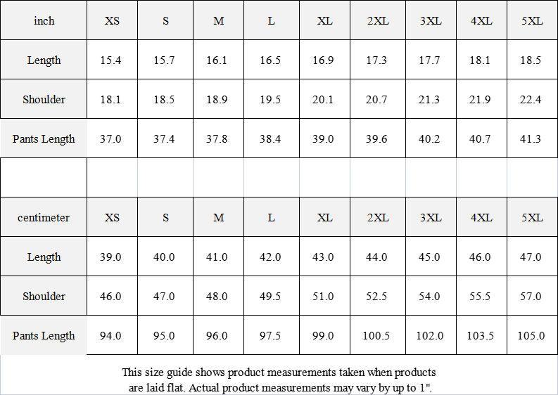 centimeter XS S M L XL 2XL 3XL 4XL 5XL