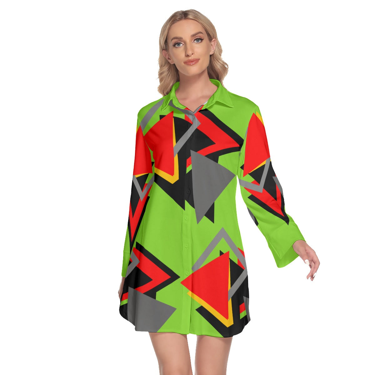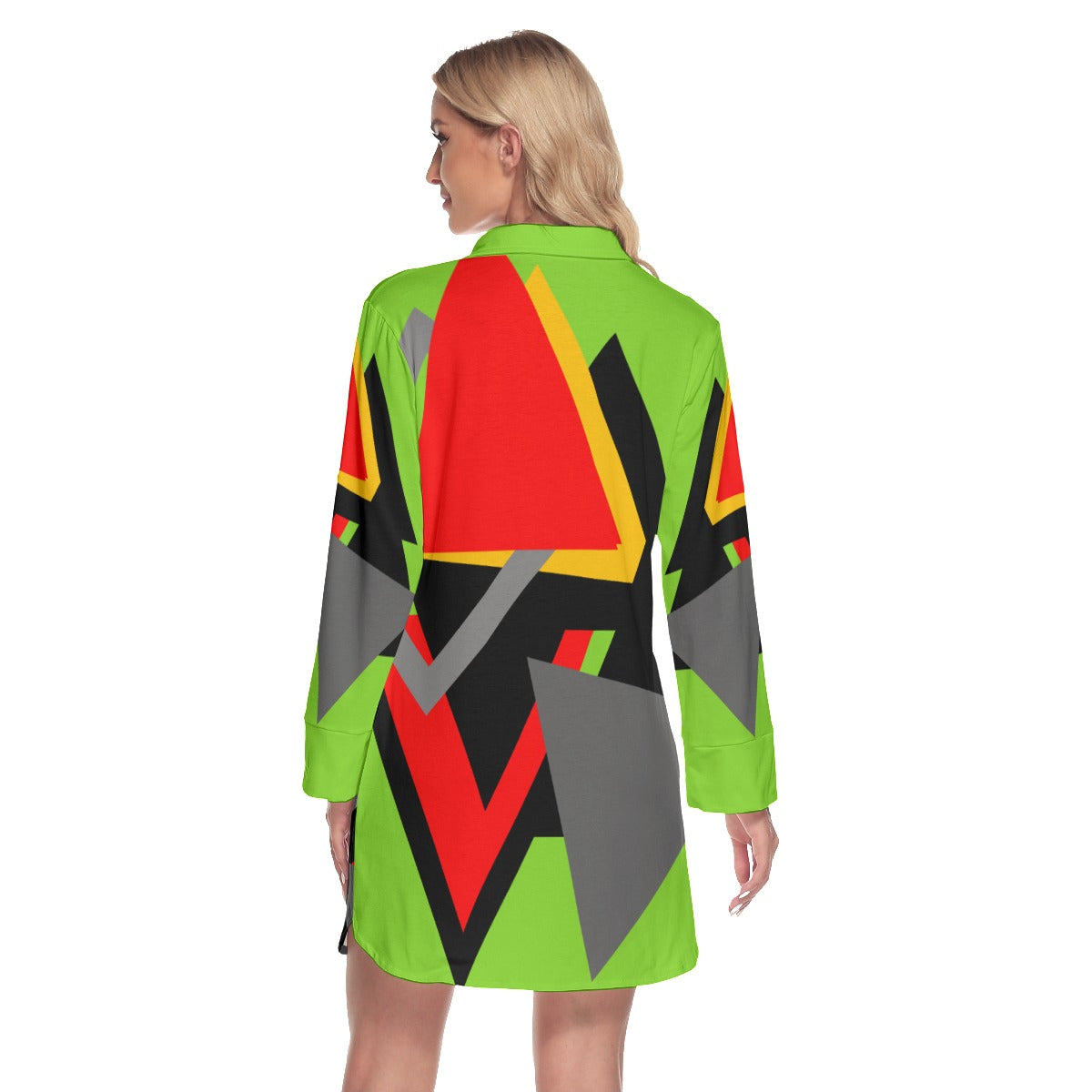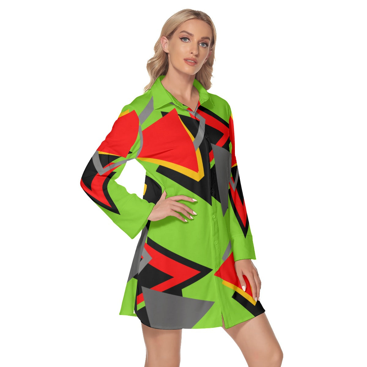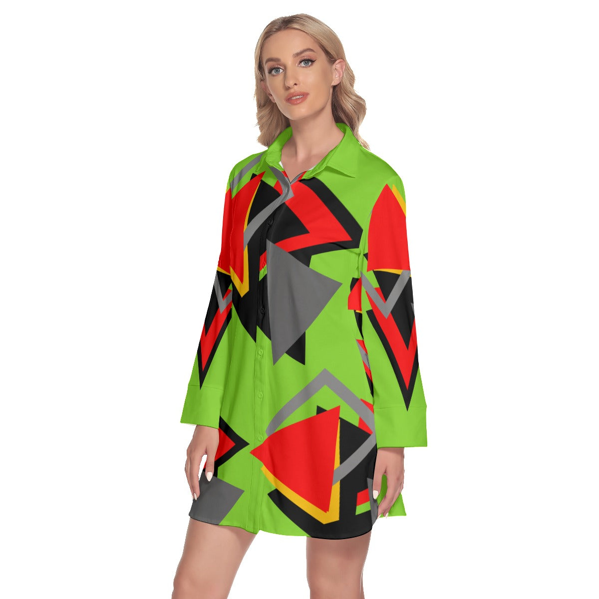 Origen Destination |On-Arrival Point of Origen Dia-symbol Women's Lapel Shirt Dress With Long Sleeve