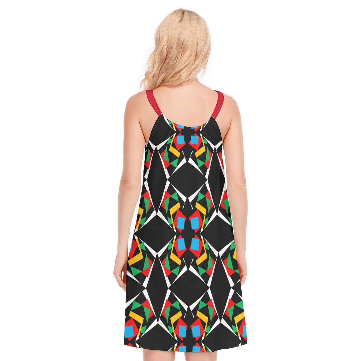 Origen Destination |On-Arrival Point of Origen Women's Black/Multicolor O-neck Cami Dress