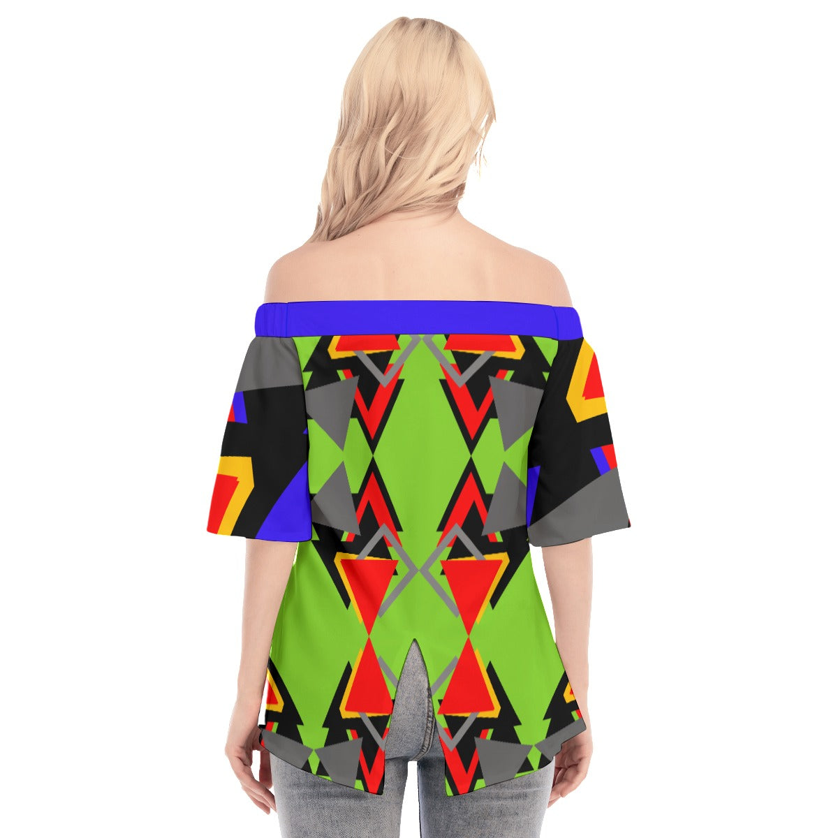 - Off-shoulder, short sleeve, back split