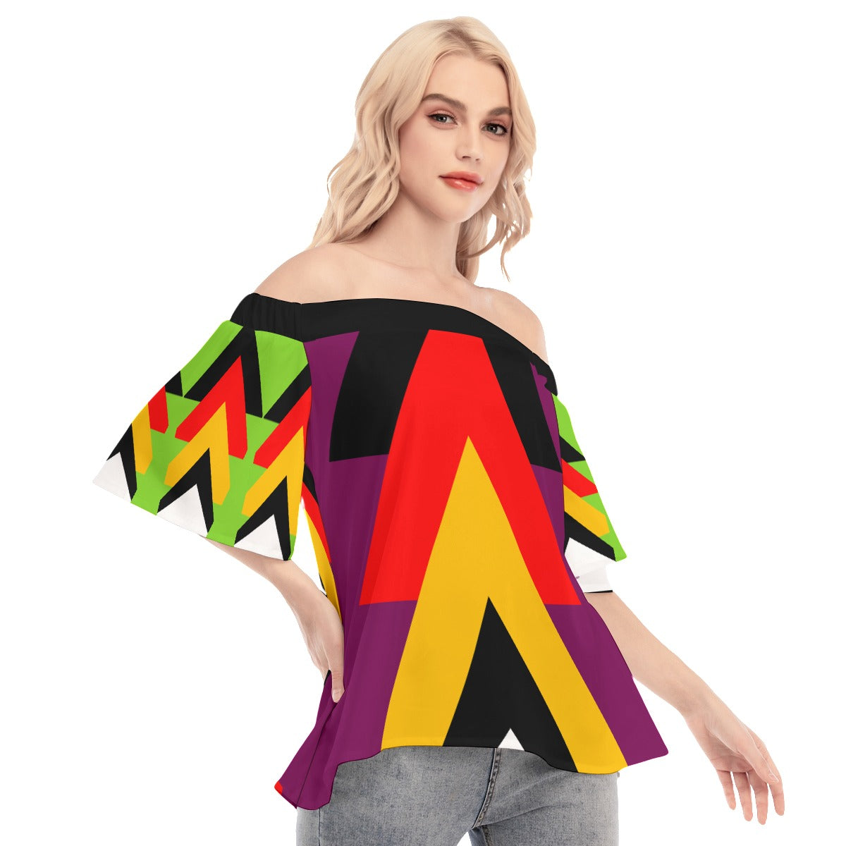 Origen Destination| Dia-Symbol Women's Off-shoulder Flared Sleeves top