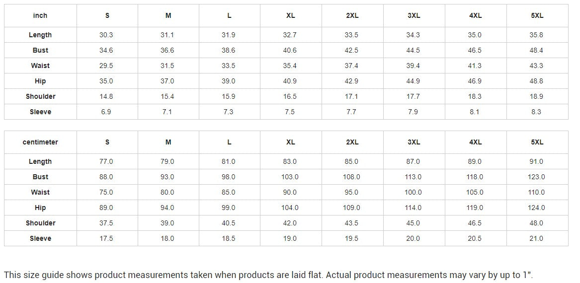 | inch | S | M | L | XL | 2XL | 3XL | 4XL | 5XL |
