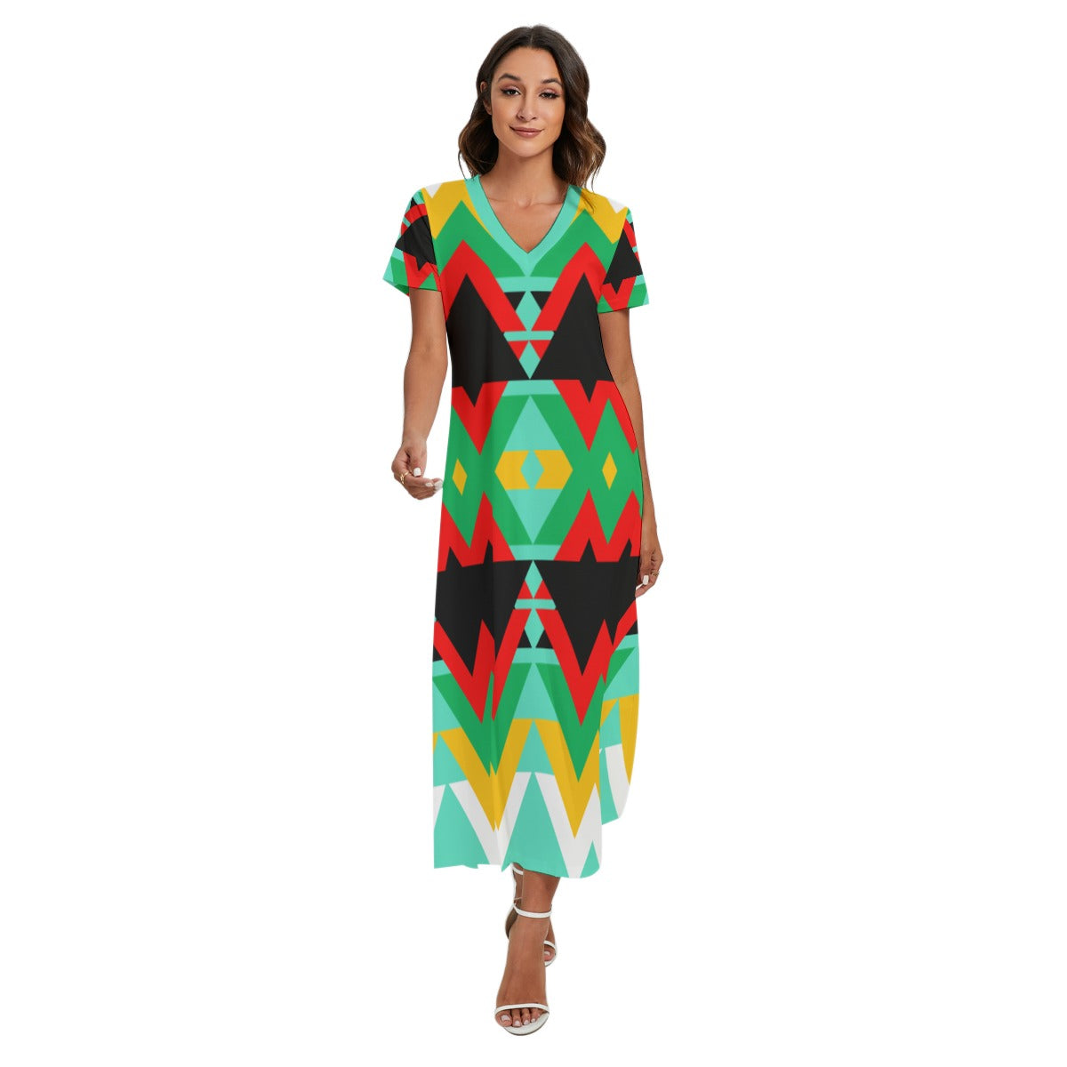 Origen Destination |On-Arrival Point of Origen Dia-symbol Women's V-neck Dress With Short Sleeve