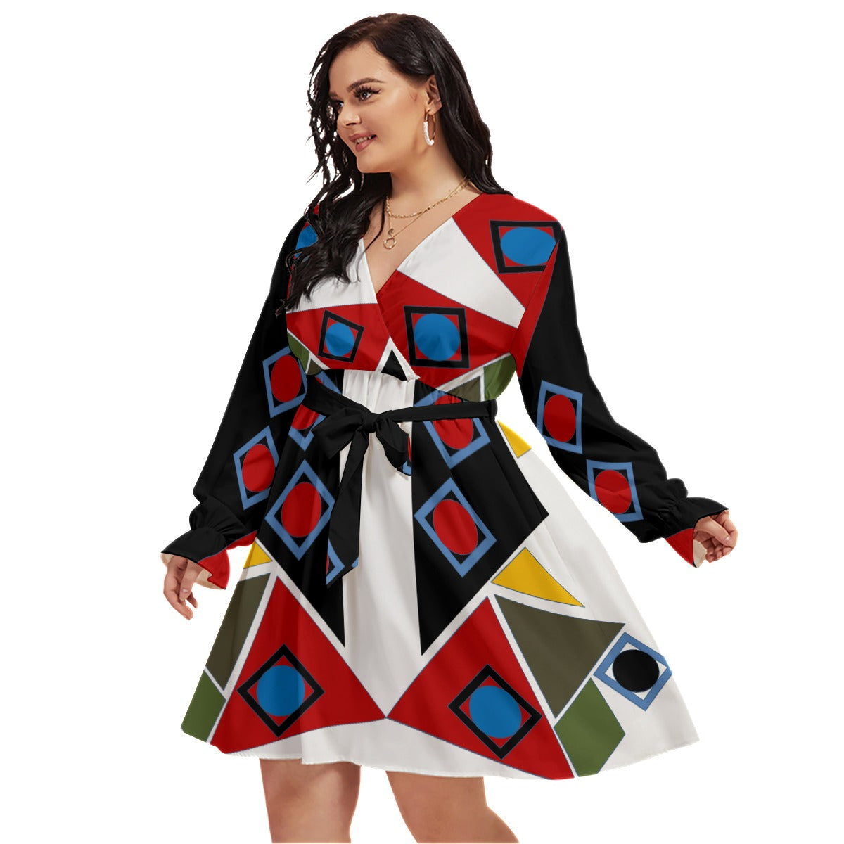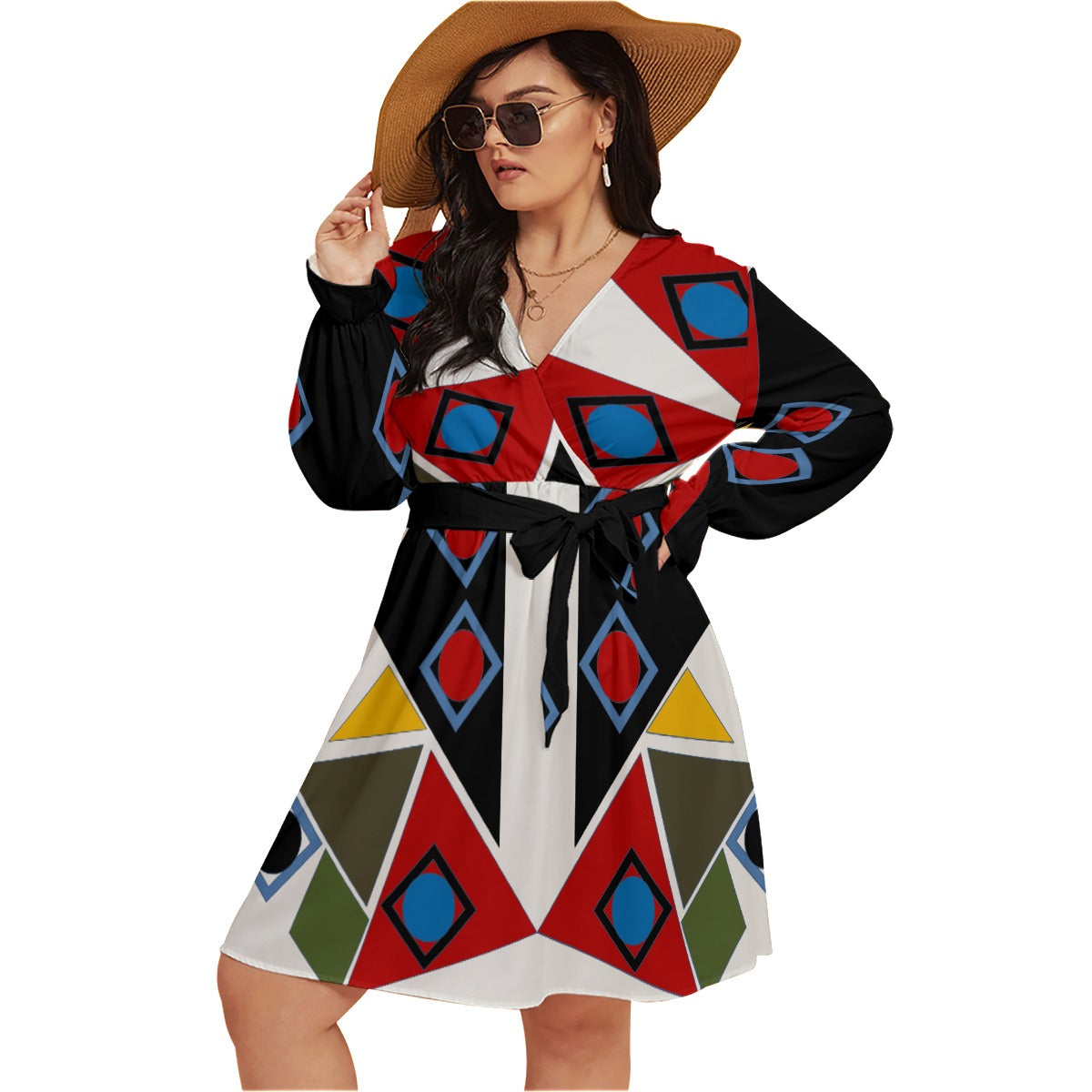Origen Destination Women's V-neck Dress With Waistband(Plus Size)