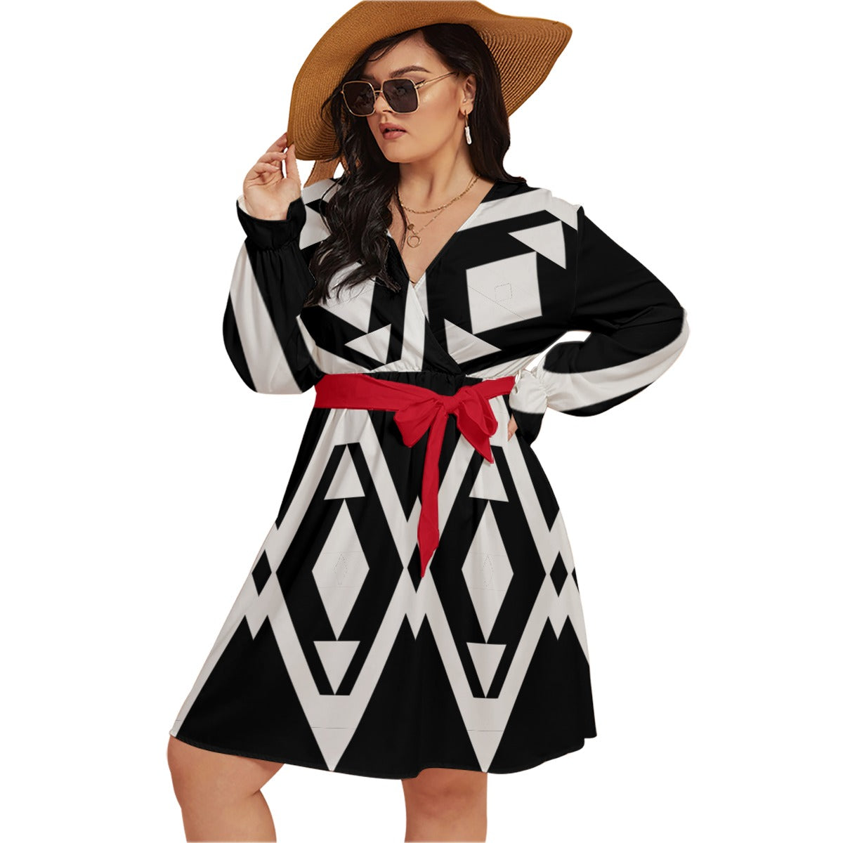 Origen Destination |On-Arrival Point of Origen Dia-Symbol Women's V-neck Dress With Waistband (Full-figured)