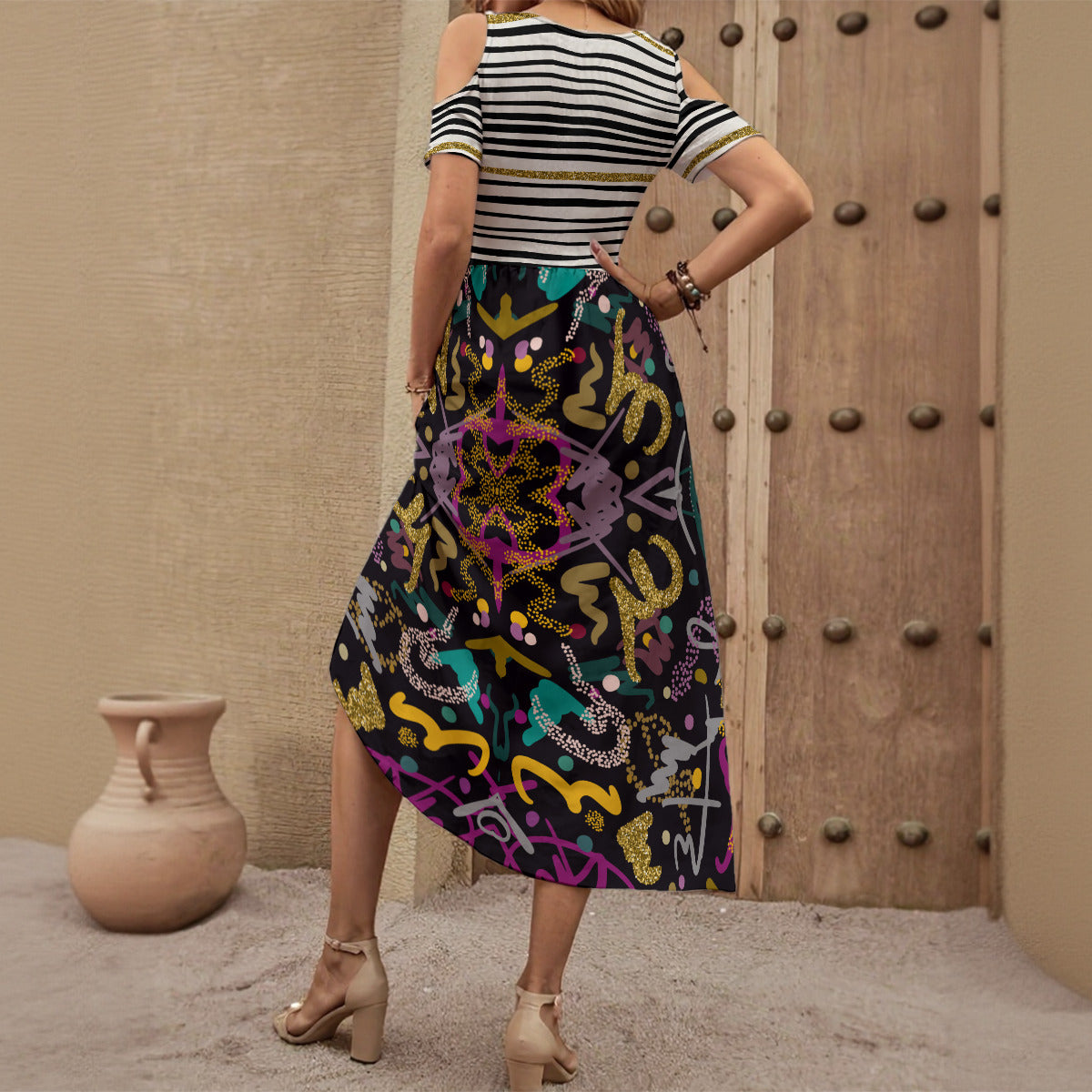 Experience effortless elegance in our off-the-shoulder maxi dress, the perfect blend of comfort and style. Made from high-quality, lightweight and soft fabric, this dress is designed to keep you cool and comfortable while looking fabulous all day long. The fitted V-neck and sleek, off-the-shoulder short sleeves flatter your shoulders for a feminine, modern silhouette. The high-rise cut, slightly nipped in at the waist, and draped at the hem for a fitted, figure-flattering drape without sacrificing comfort.