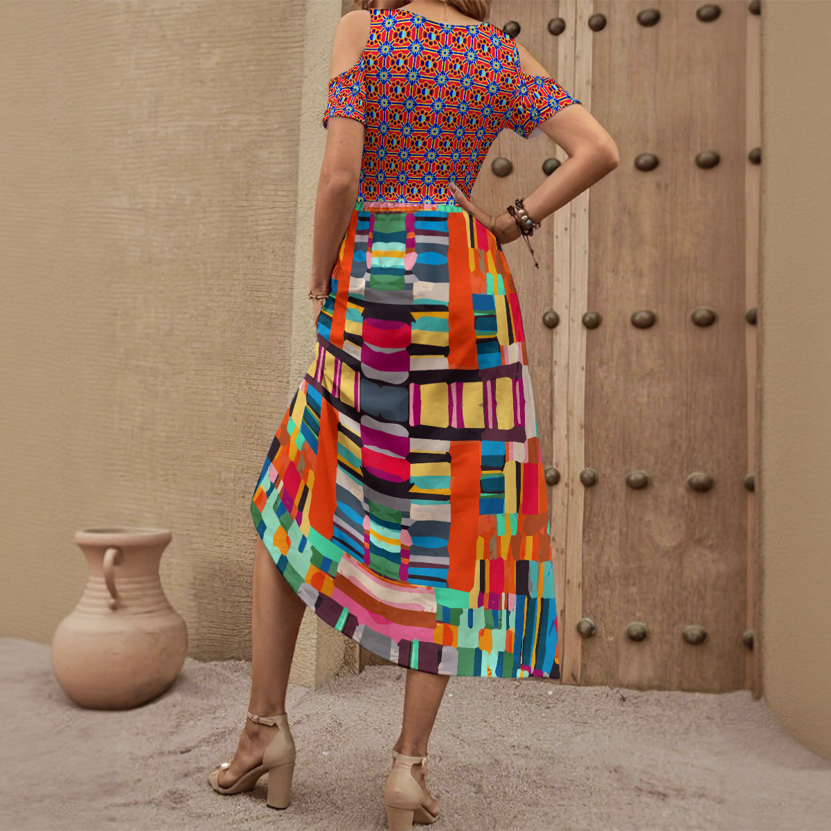 Experience effortless elegance in our off-the-shoulder maxi dress, the perfect blend of comfort and style. Made from high-quality, lightweight and soft fabric, this dress is designed to keep you cool and comfortable while looking fabulous all day long. The fitted V-neck and sleek, off-the-shoulder short sleeves flatter your shoulders for a feminine, modern silhouette. The high-rise cut, slightly nipped in at the waist, and draped at the hem for a fitted, figure-flattering drape without sacrificing comfort.