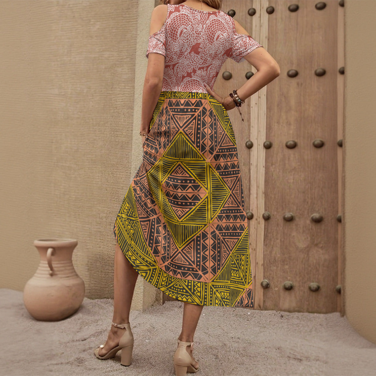 Experience effortless elegance in our off-the-shoulder maxi dress, the perfect blend of comfort and style. Made from high-quality, lightweight and soft fabric, this dress is designed to keep you cool and comfortable while looking fabulous all day long. The fitted V-neck and sleek, off-the-shoulder short sleeves flatter your shoulders for a feminine, modern silhouette. The high-rise cut, slightly nipped in at the waist, and draped at the hem for a fitted, figure-flattering drape without sacrificing comfort.
