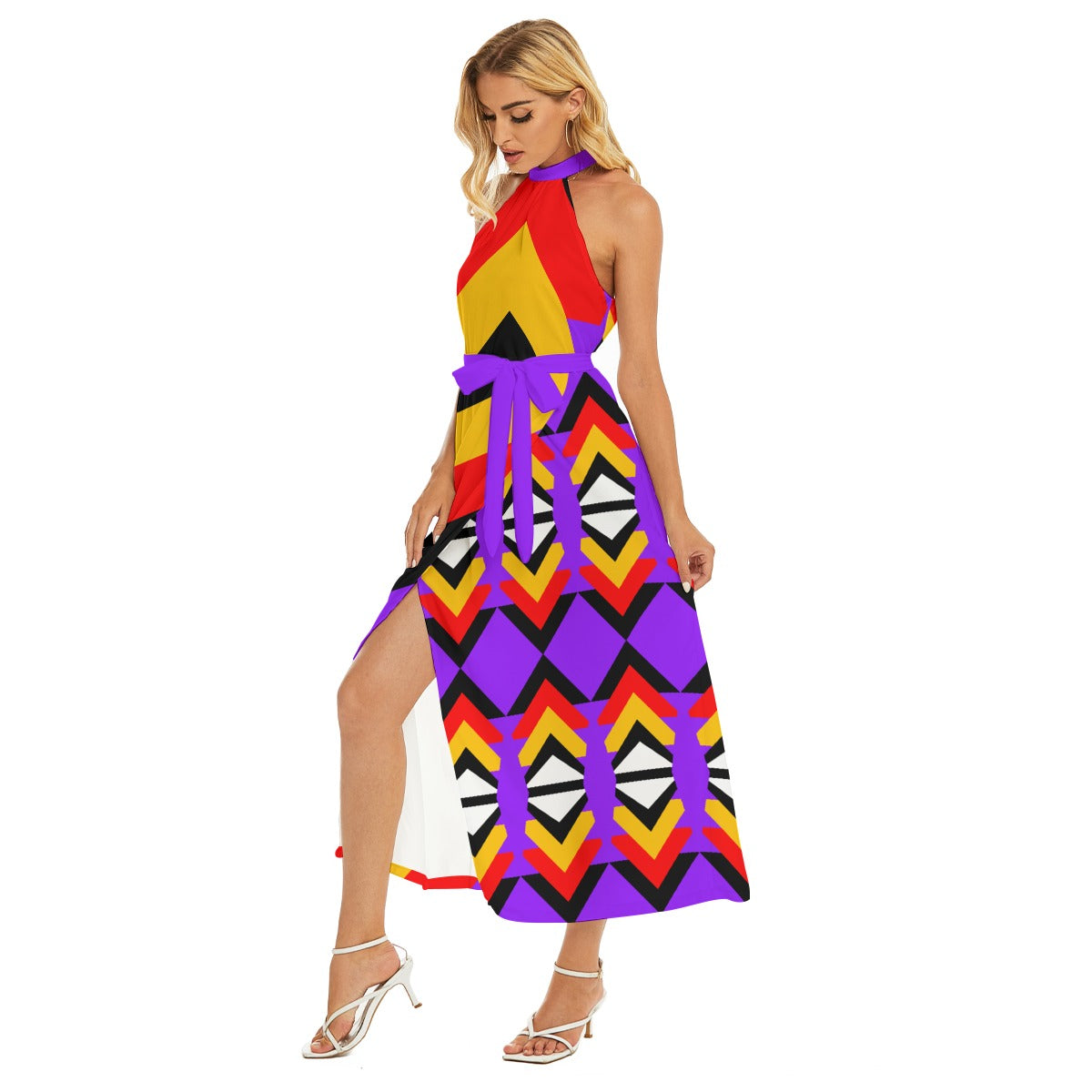 Origen Destination Women's Wrap Hem Belted Halter Dress