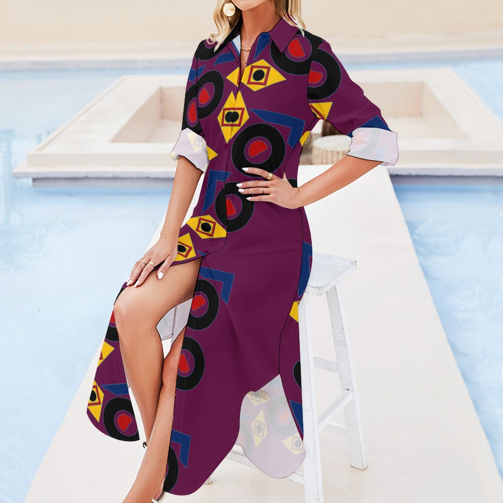 Origen Destination Women's Long-sleeve Button-neck Shirt Dress