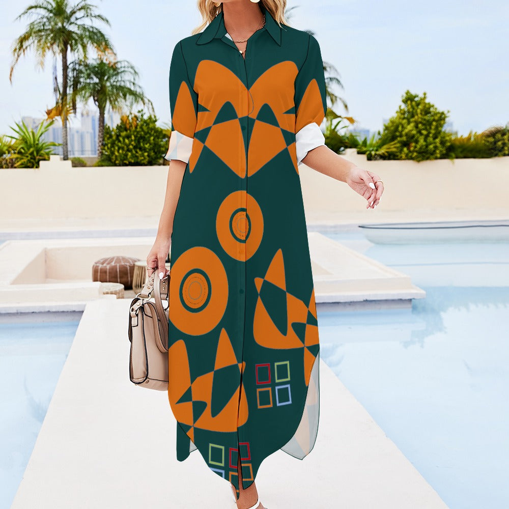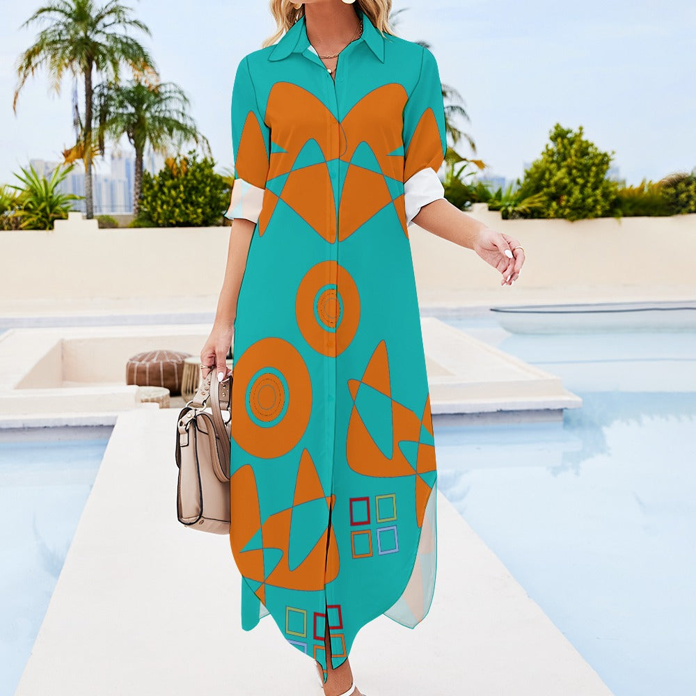 Origen Destination Women's Long Sleeve Button Neck Shirt Dress