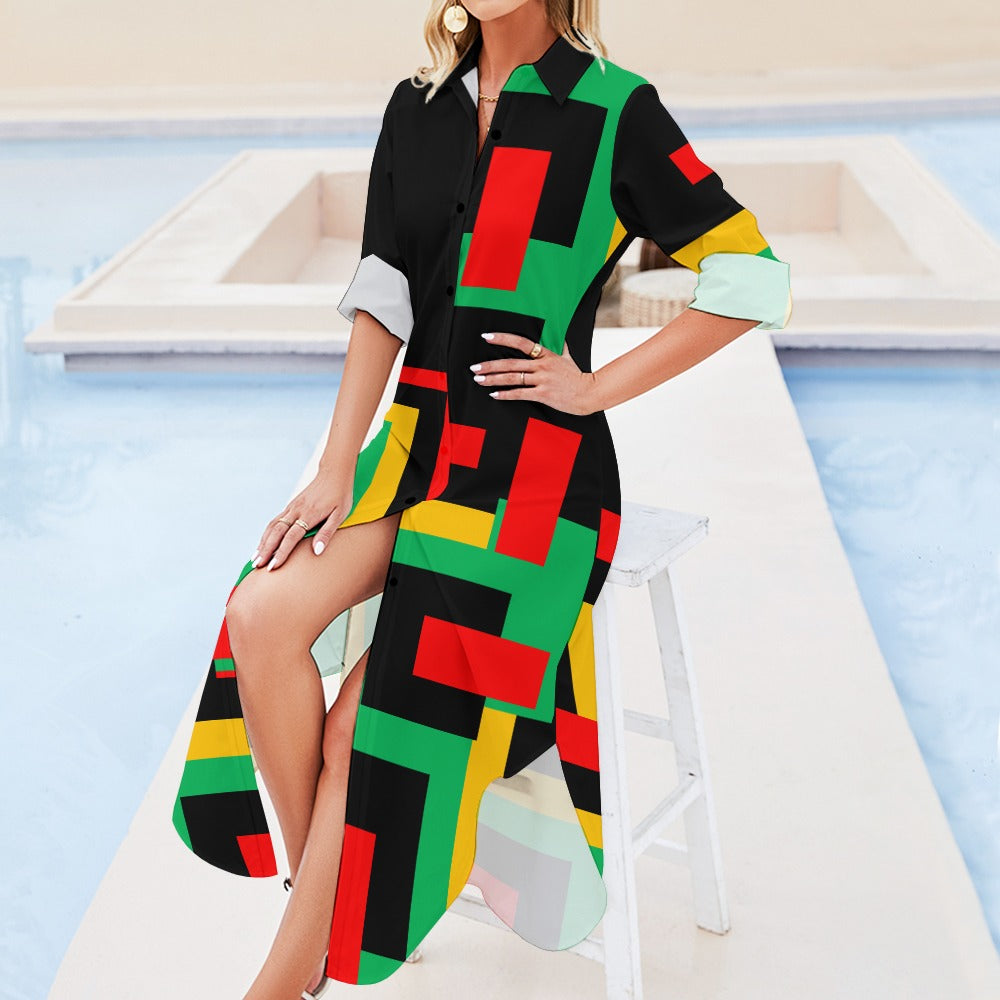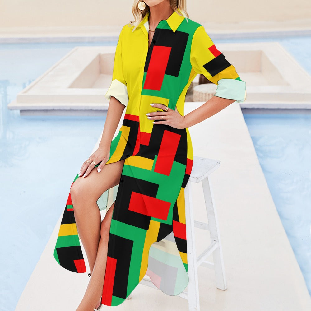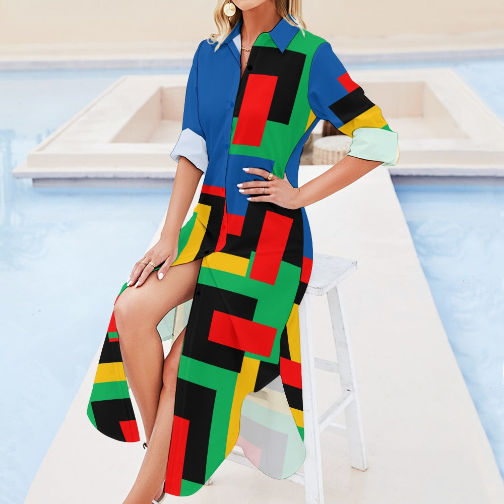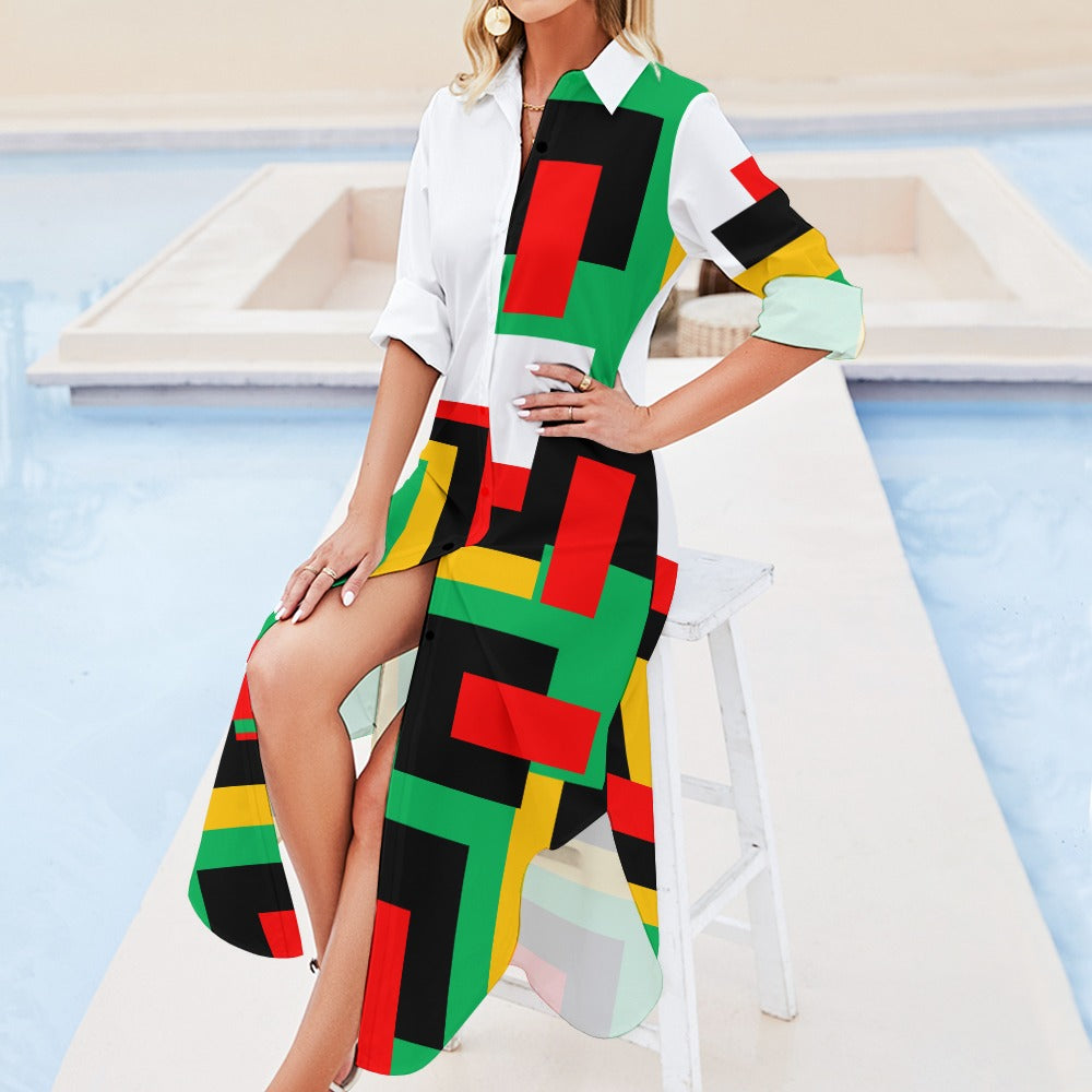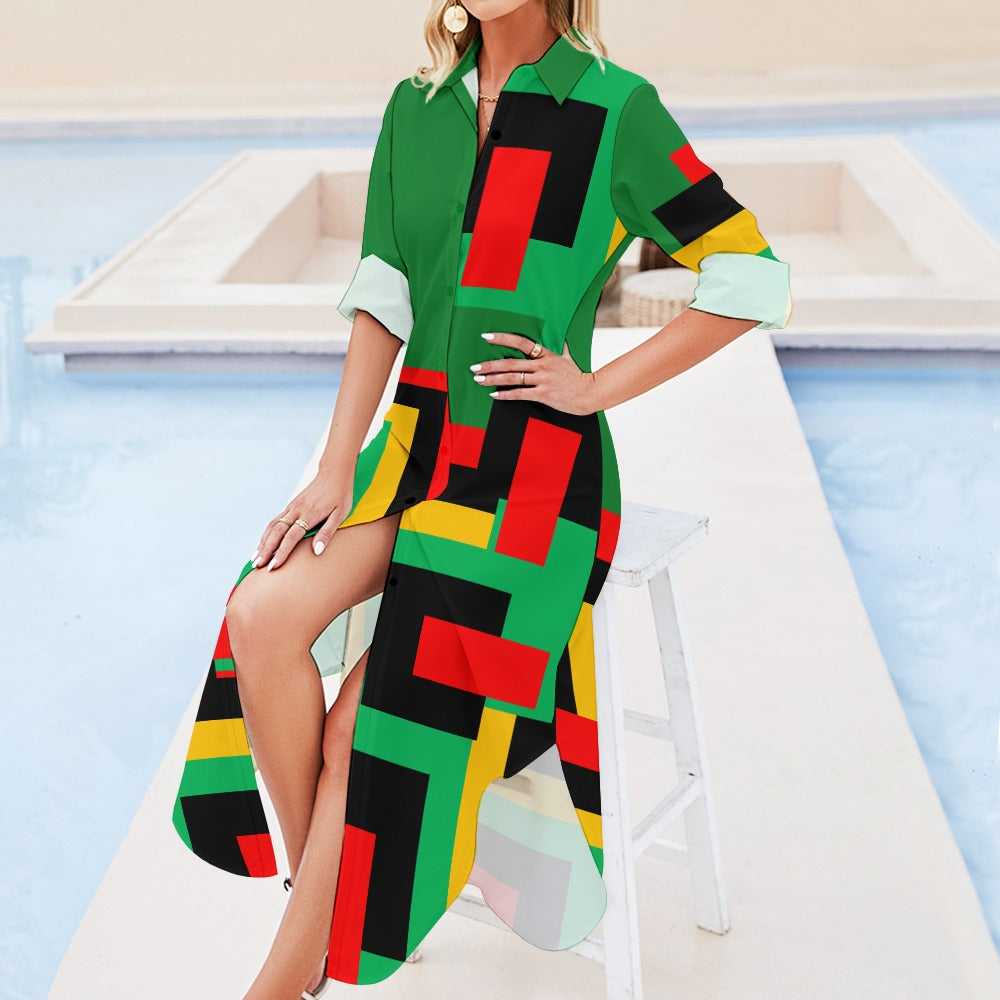 Origen Destination Women's Long Sleeve Button Neck Shirt Dress