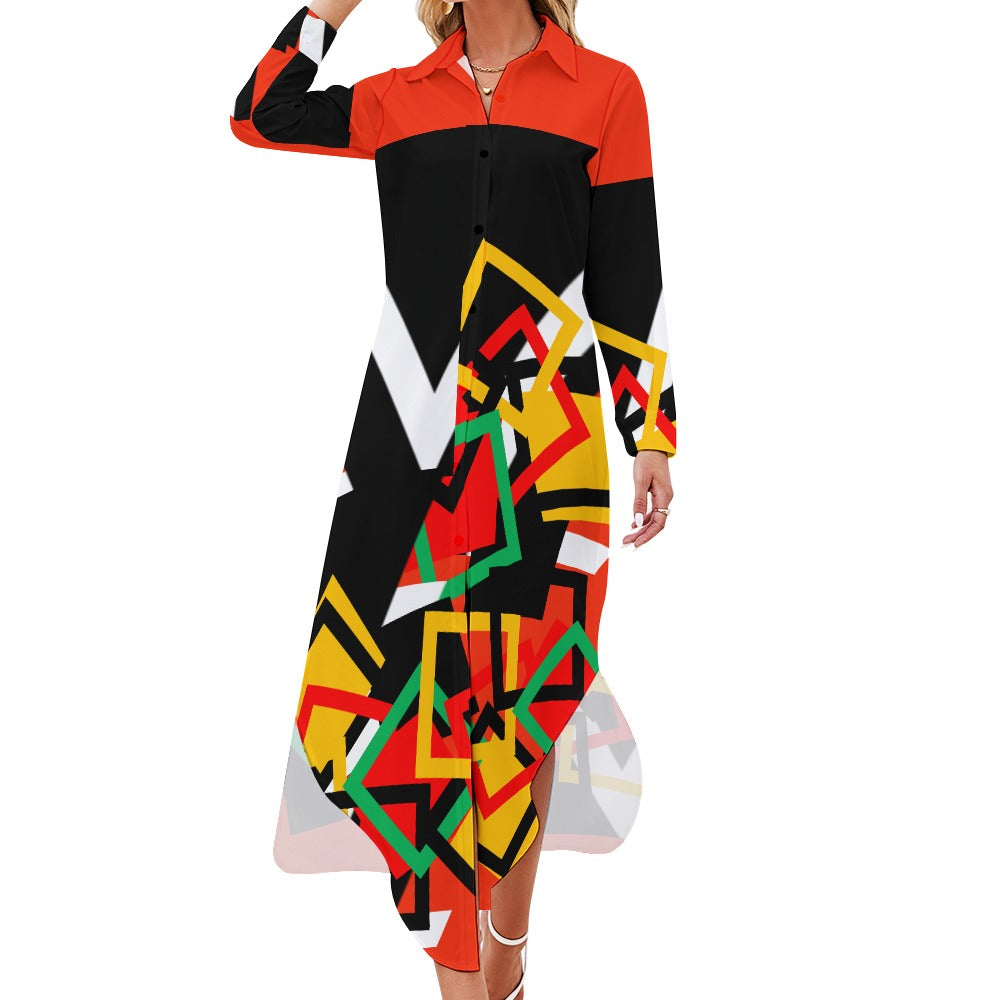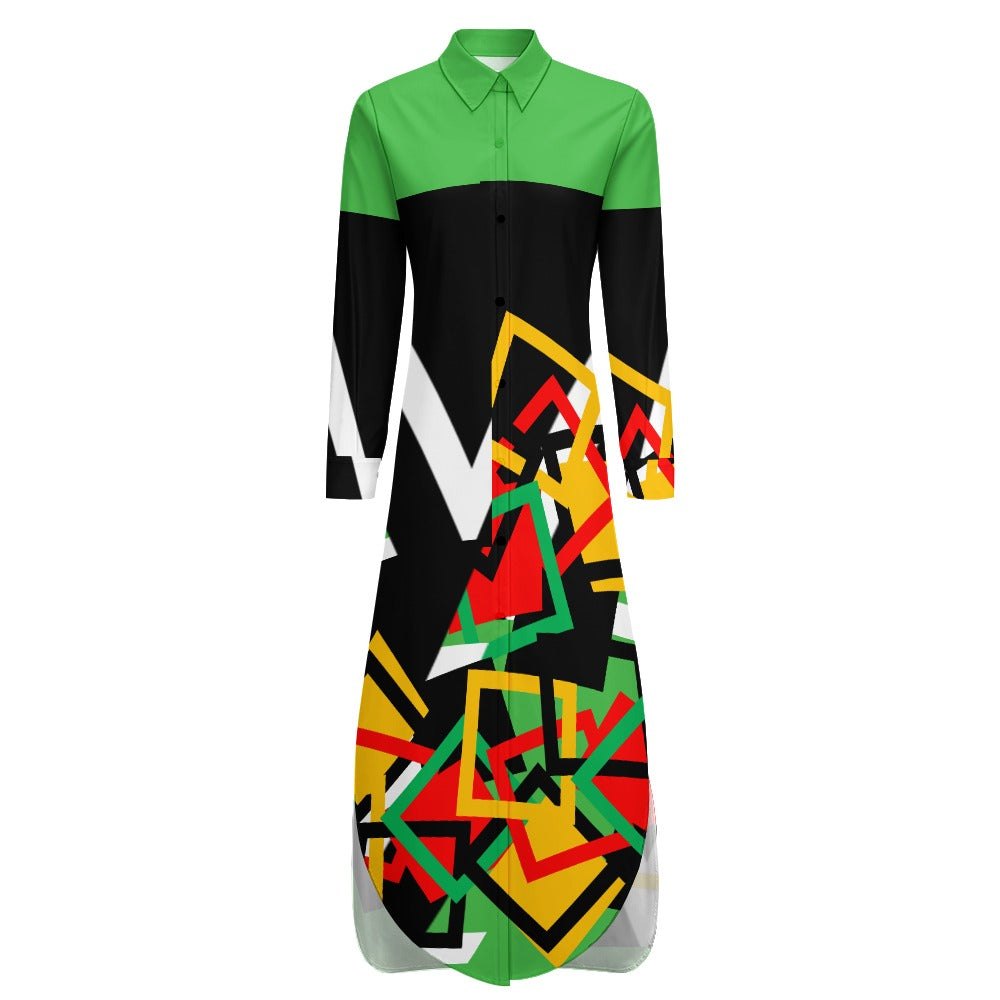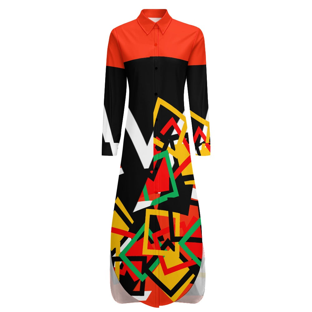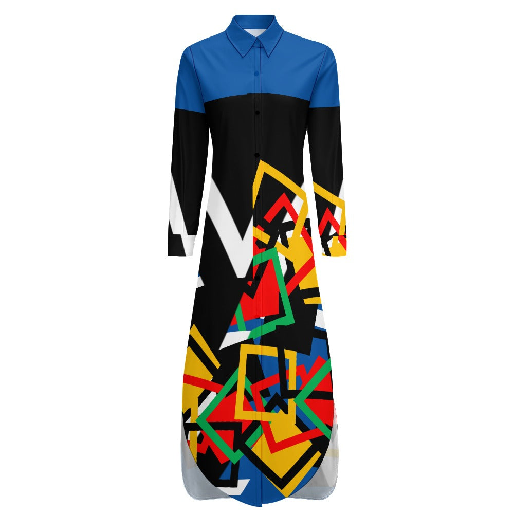 Origen Destination Women's Long-sleeve Button-neck Shirt Dress