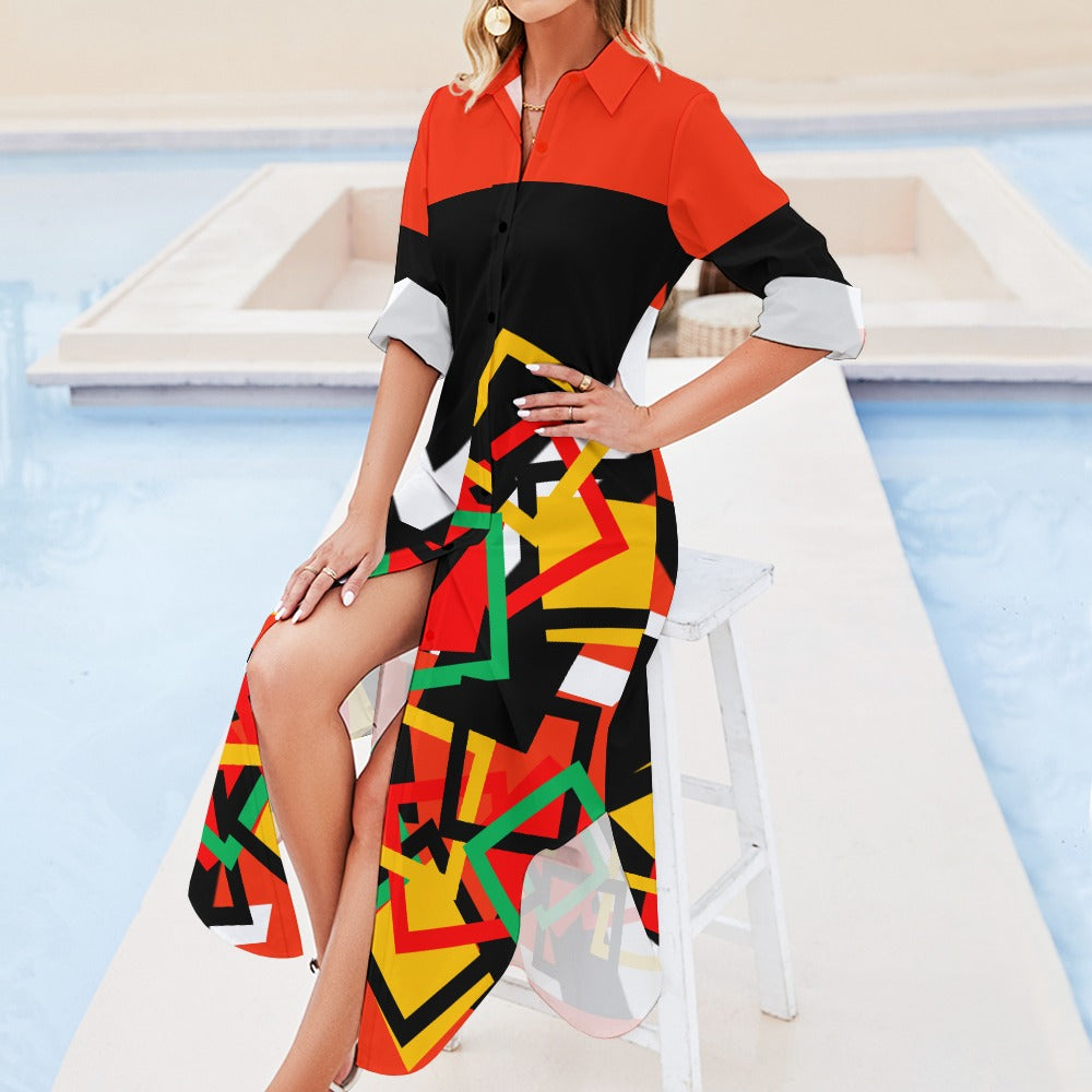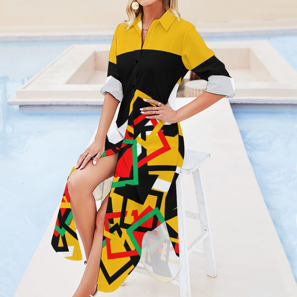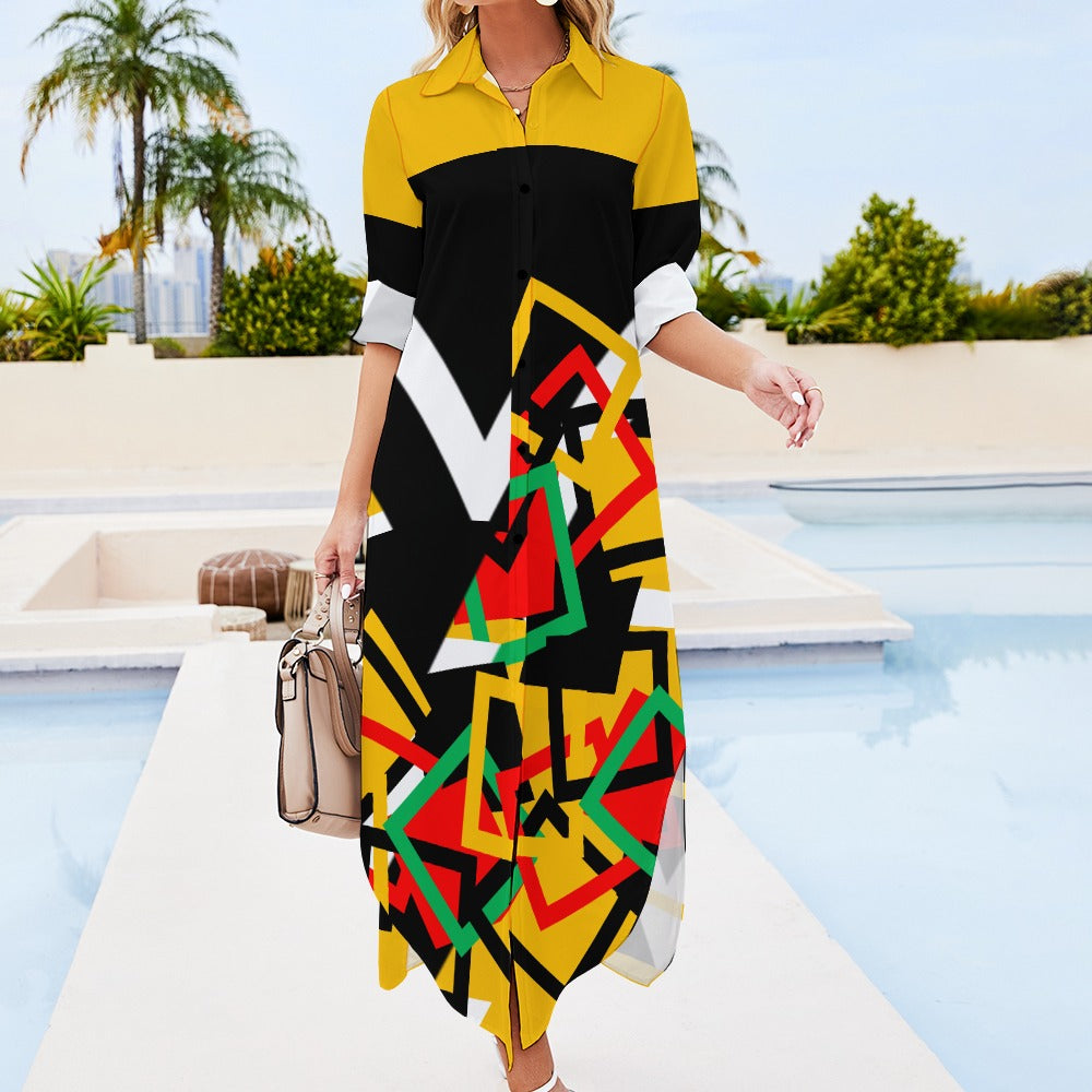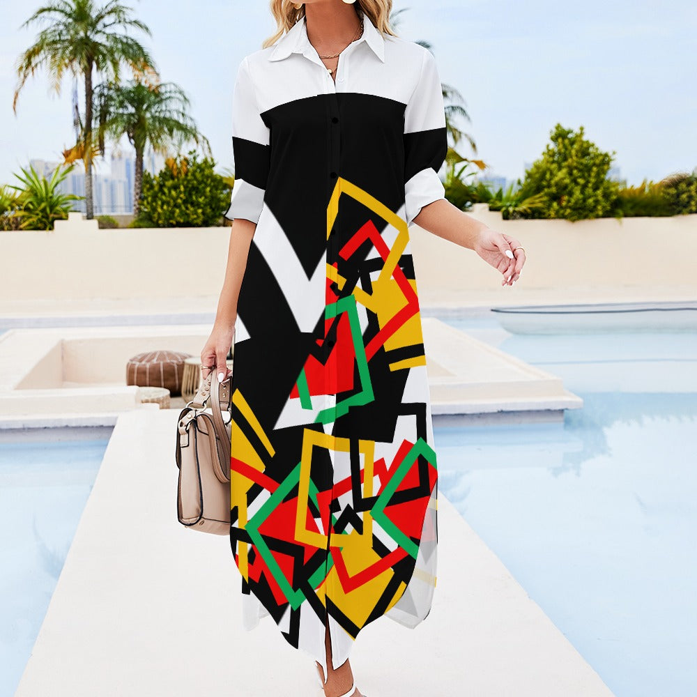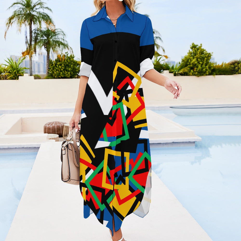 Origen Destination Women's Long-sleeve Button-neck Shirt Dress