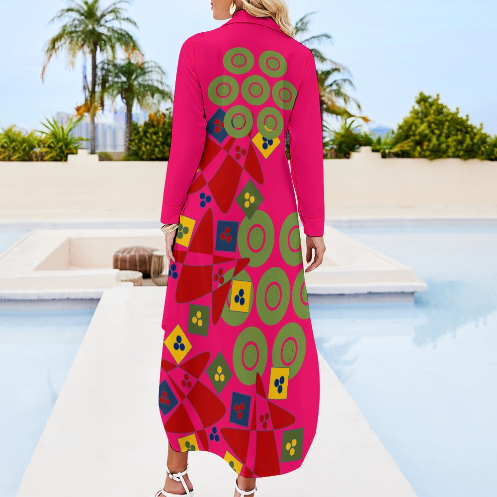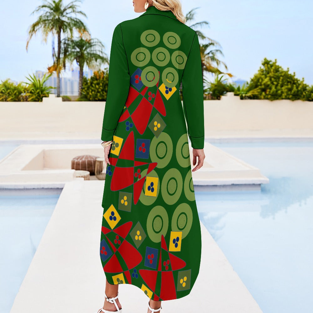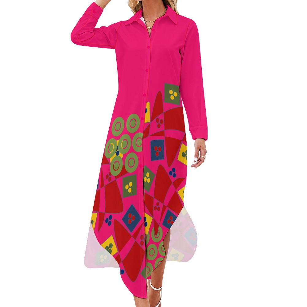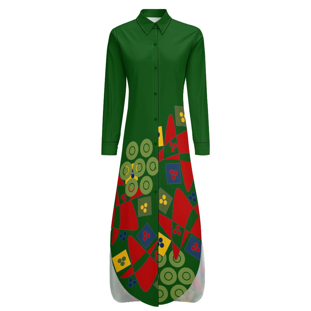 Origen Destination Women's Long-sleeve Button-neck Shirt Dress