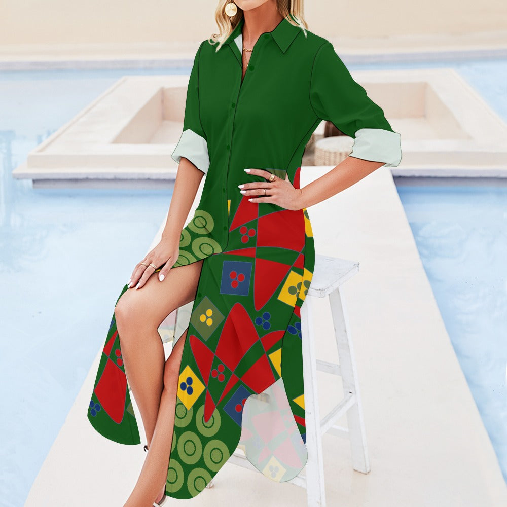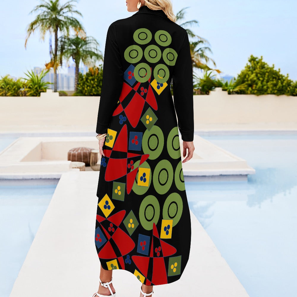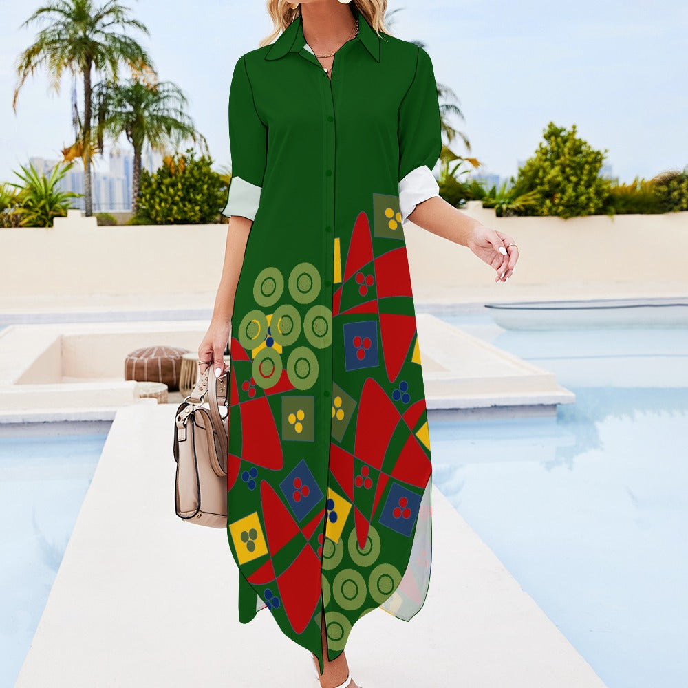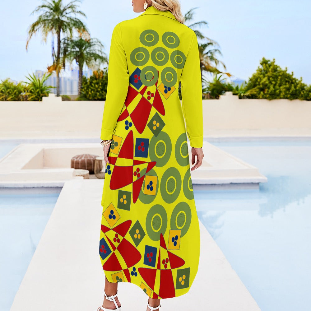 Origen Destination Women's Long-sleeve Button-neck Shirt Dress