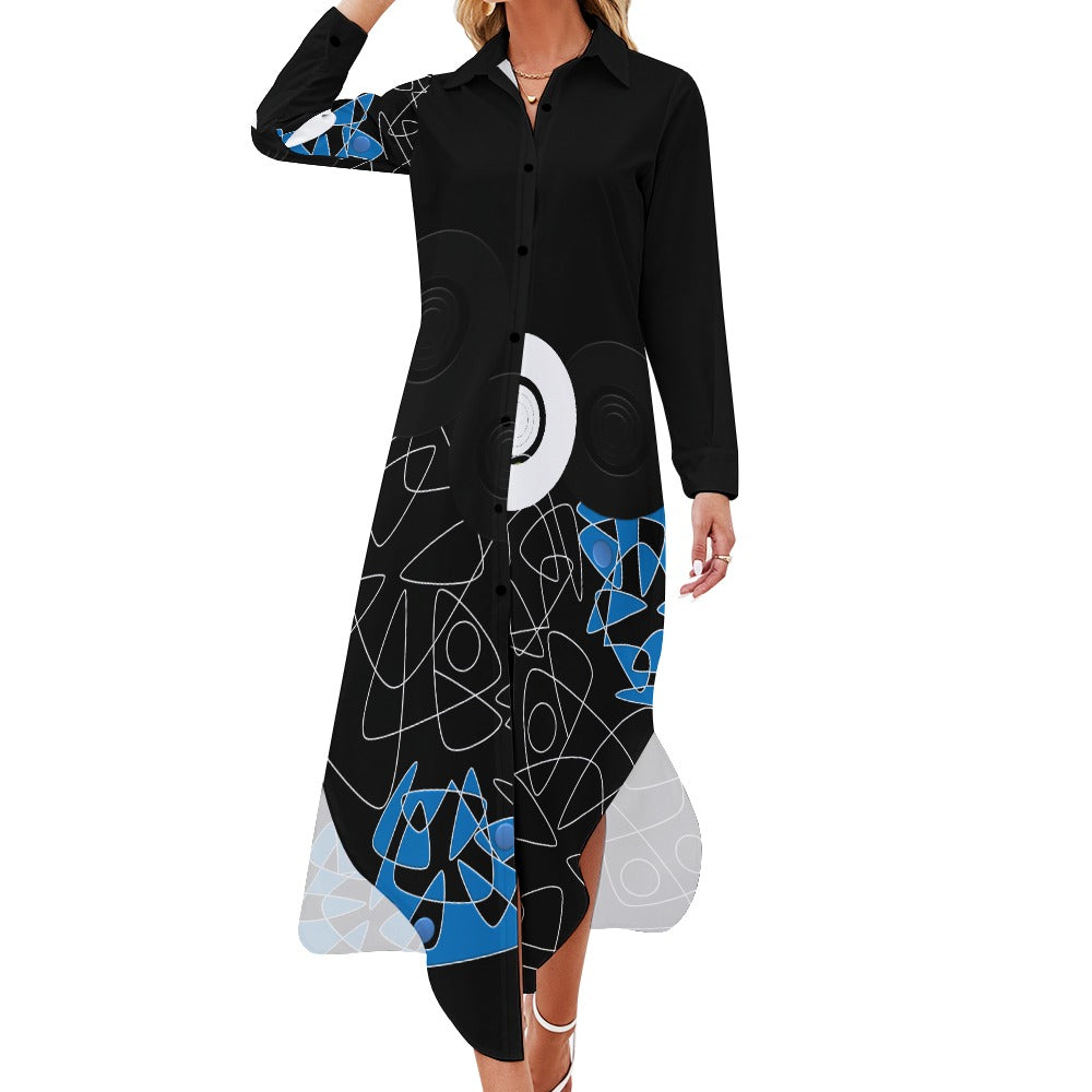 Our dress is made of 100% polyester material, which is soft and comfortable to the touch, simple and practical, not easy to shrink, and durable. The basic style of the dress, the perfect silhouette, suitable for any body type, a great choice for everyday wear or office wear. This dress is designed with long sleeves, button collar, and part of the skirt with a bird's nest slit, which is very convenient to put on and take off. Above-the-knee length and flowy hem for a comfortable, lightweight, long shirt style that helps you look more elegant overall.