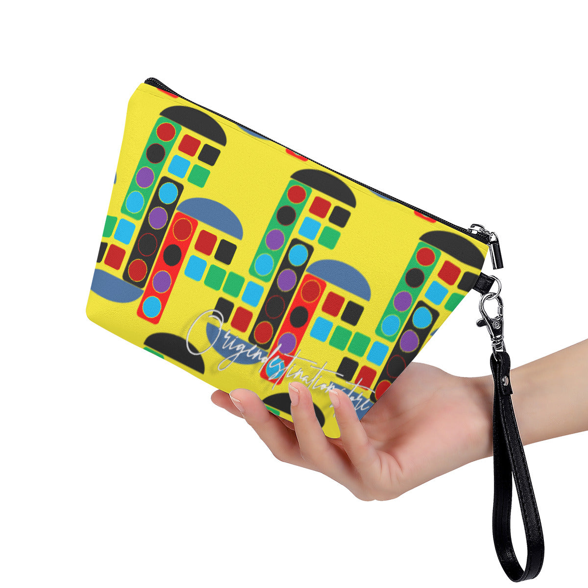 PU waterproof durable fabric protects your gear from spills and is easy to wipe down. Zip top closure. Unique trapezoidal shape, portable and detachable PU leather hand strap. Great for everyday use or travel.