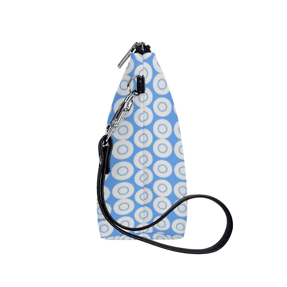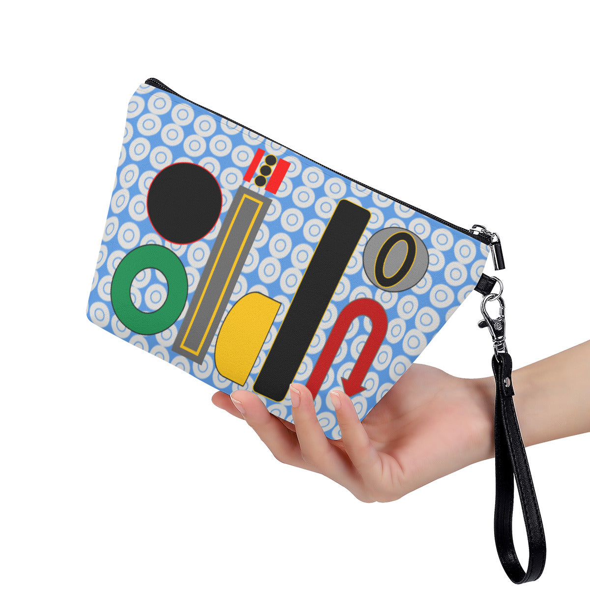 PU waterproof durable fabric protects your gear from spills and is easy to wipe down. Zip top closure. Unique trapezoidal shape, portable and detachable PU leather hand strap. Great for everyday use or travel.
