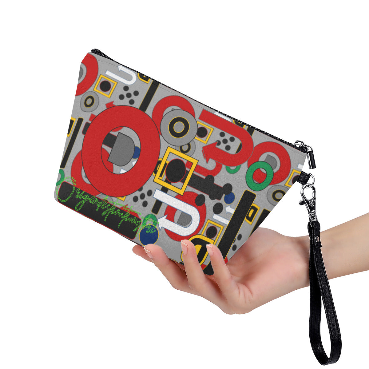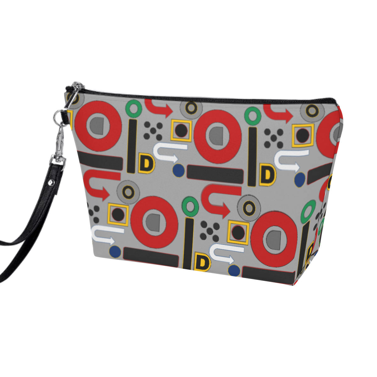PU waterproof durable fabric protects your gear from spills and is easy to wipe down. Zip top closure. Unique trapezoidal shape, portable and detachable PU leather hand strap. Great for everyday use or travel.