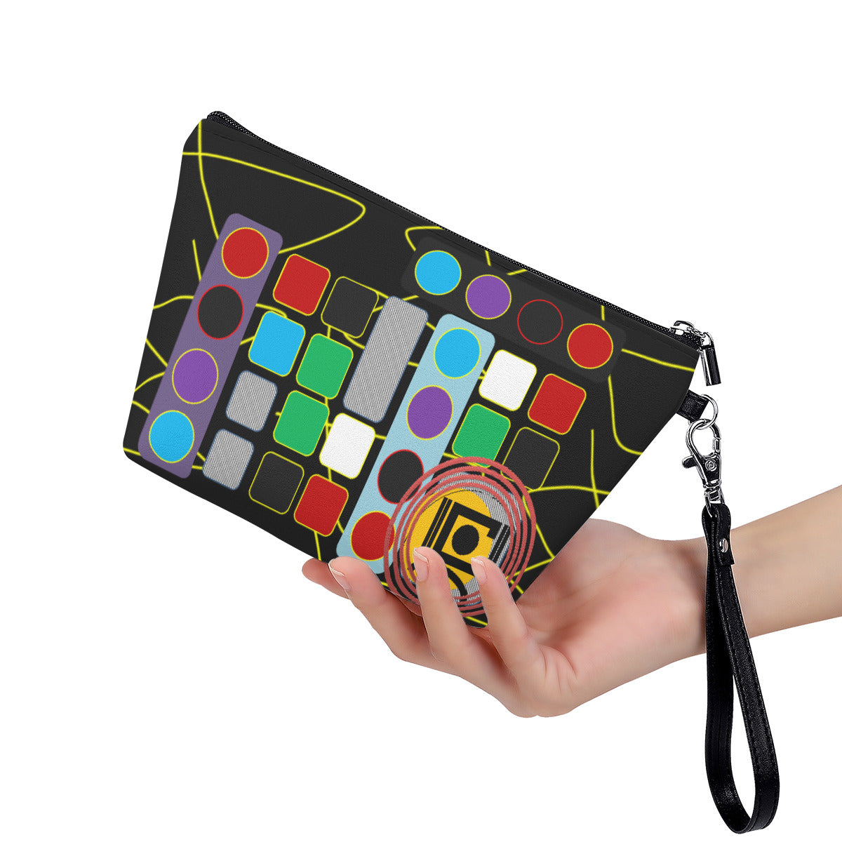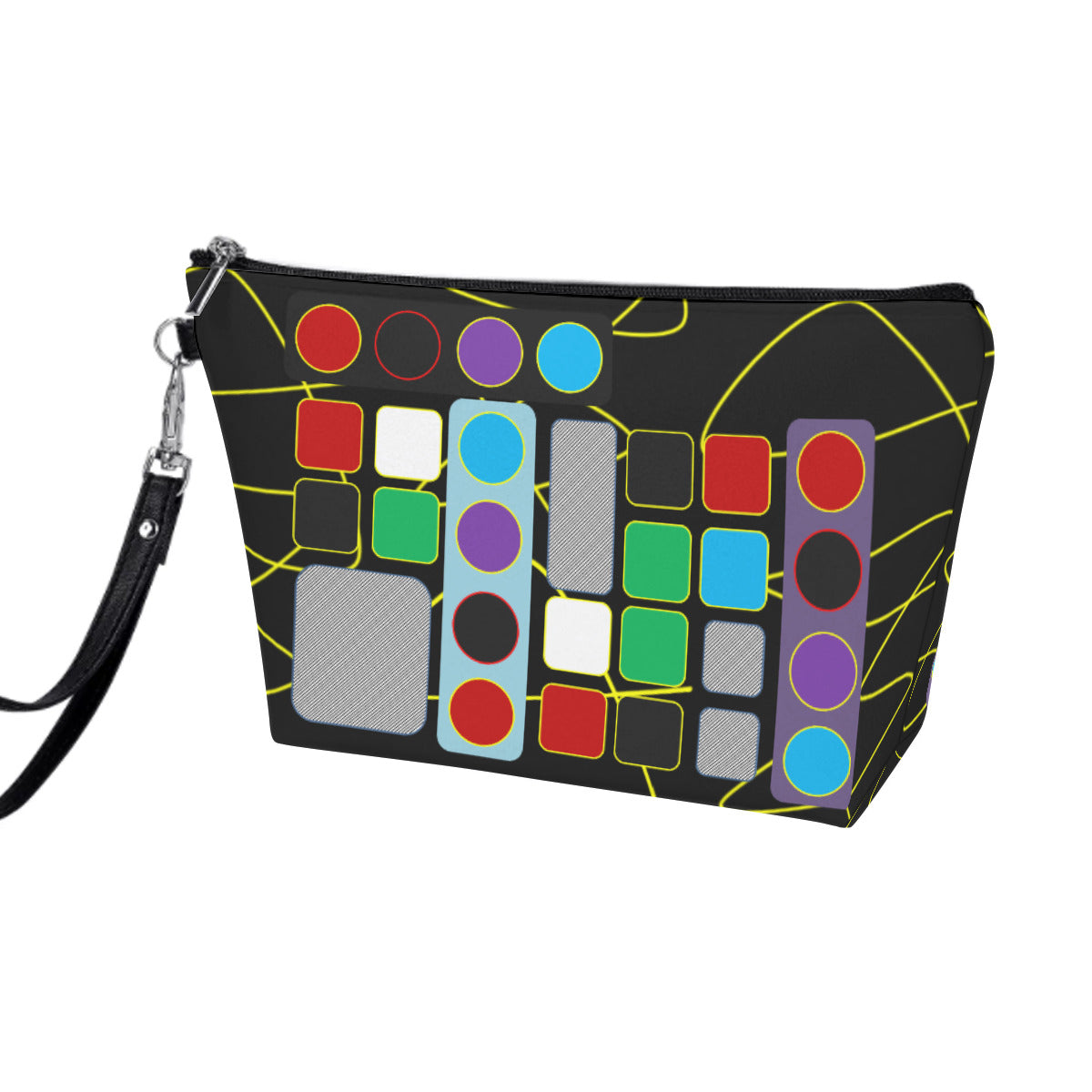 PU waterproof durable fabric protects your gear from spills and is easy to wipe down. Zip top closure. Unique trapezoidal shape, portable and detachable PU leather hand strap. Great for everyday use or travel.