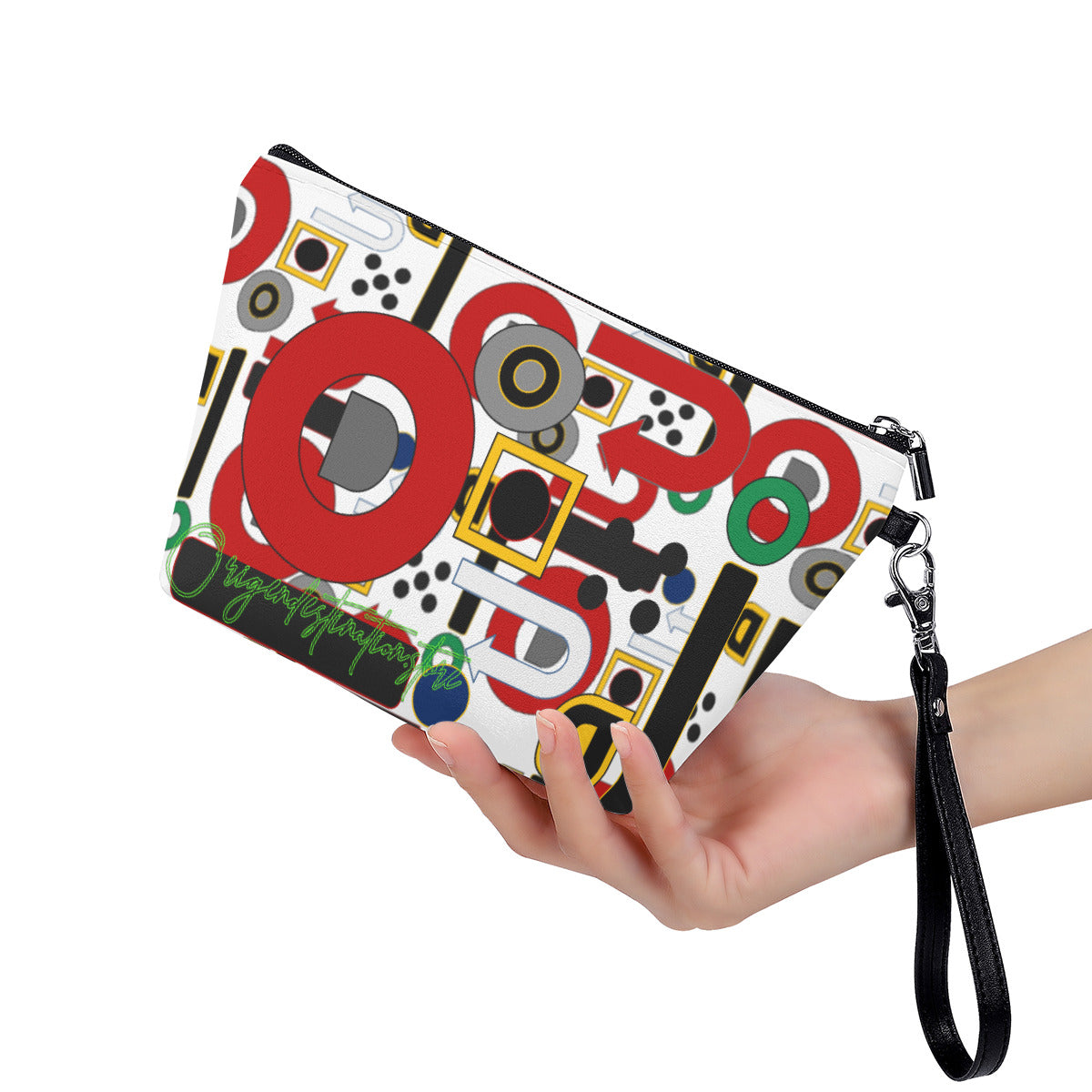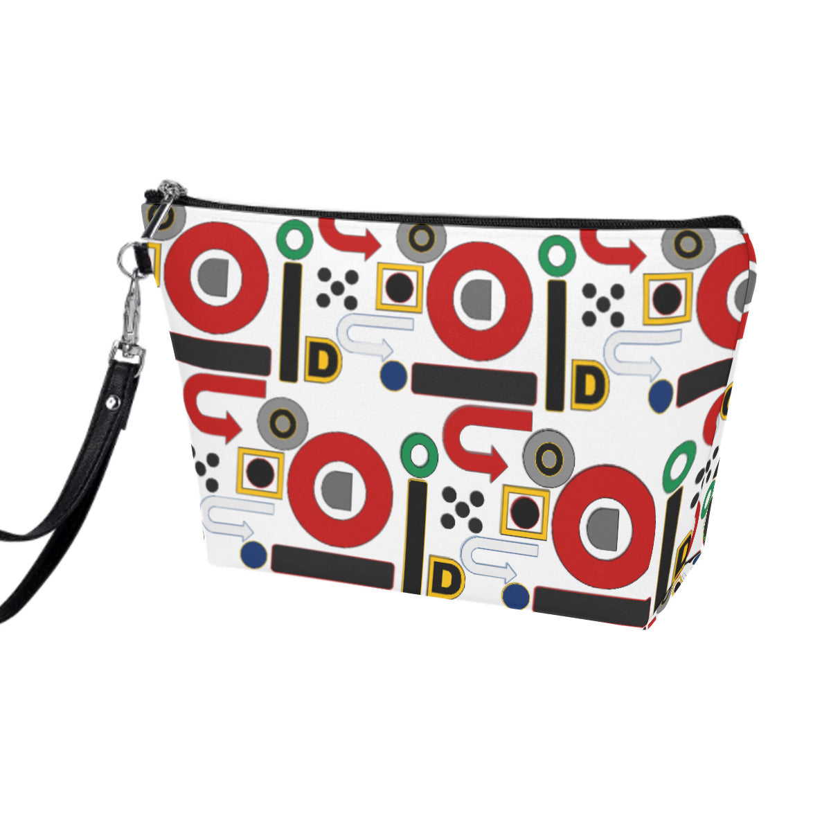PU waterproof durable fabric protects your gear from spills and is easy to wipe down. Zip top closure. Unique trapezoidal shape, portable and detachable PU leather hand strap. Great for everyday use or travel.