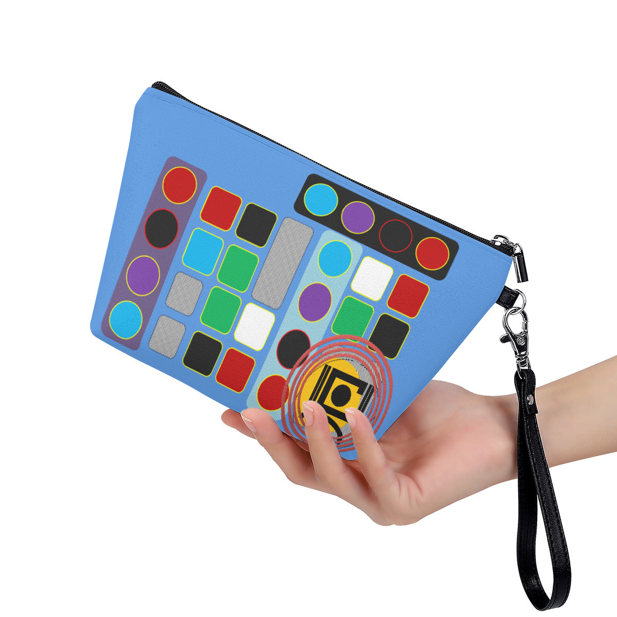 PU waterproof durable fabric protects your gear from spills and is easy to wipe down. Zip top closure. Unique trapezoidal shape, portable and detachable PU leather hand strap. Great for everyday use or travel.