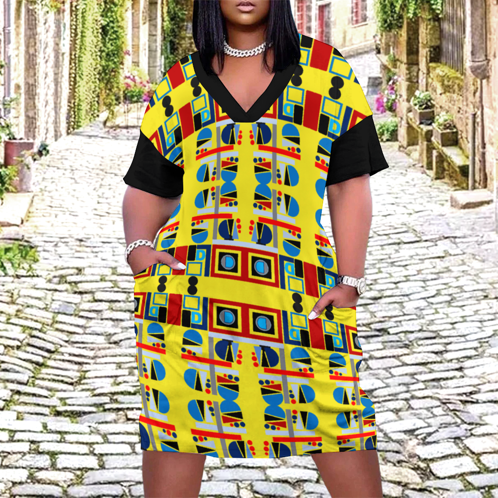 Custom Women's V-neck Loose Dress Fashion Skirts with Pockets