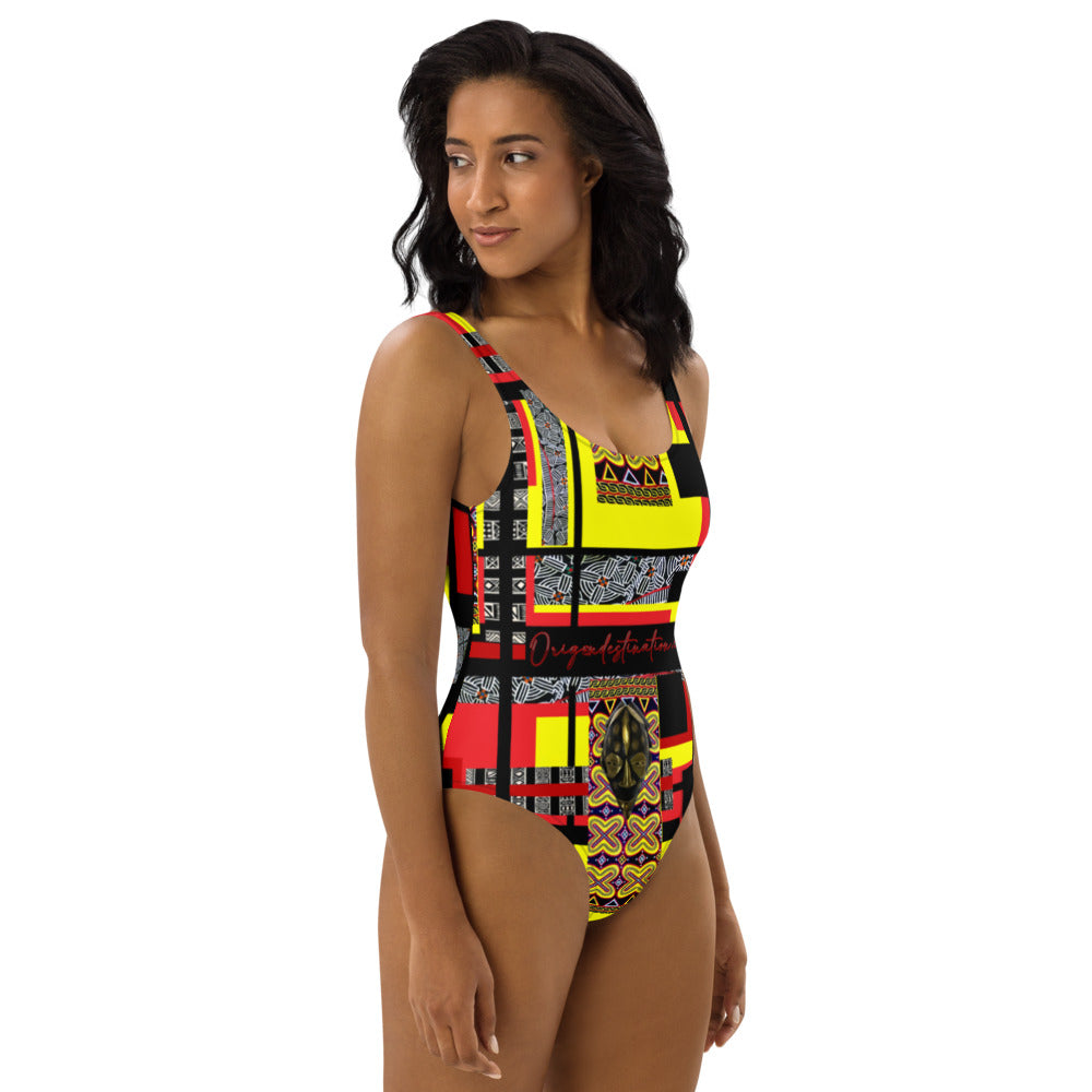 Origen Destination |On-Arrival Point of Origɛn African Symbol-inspired Red One-Piece Swimsuit