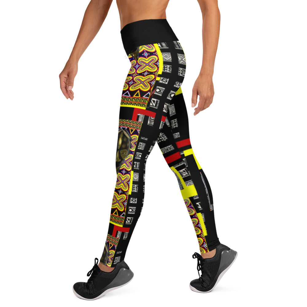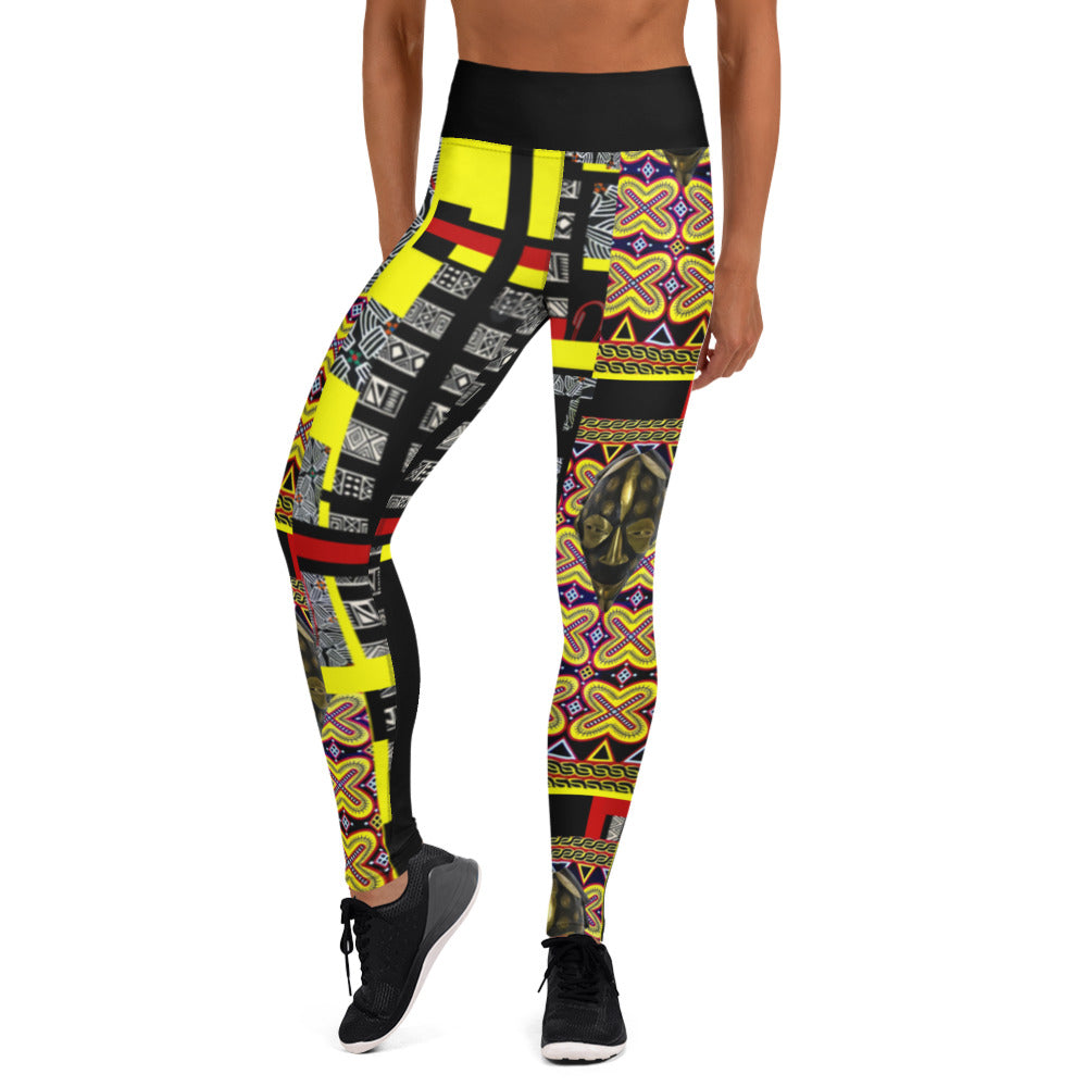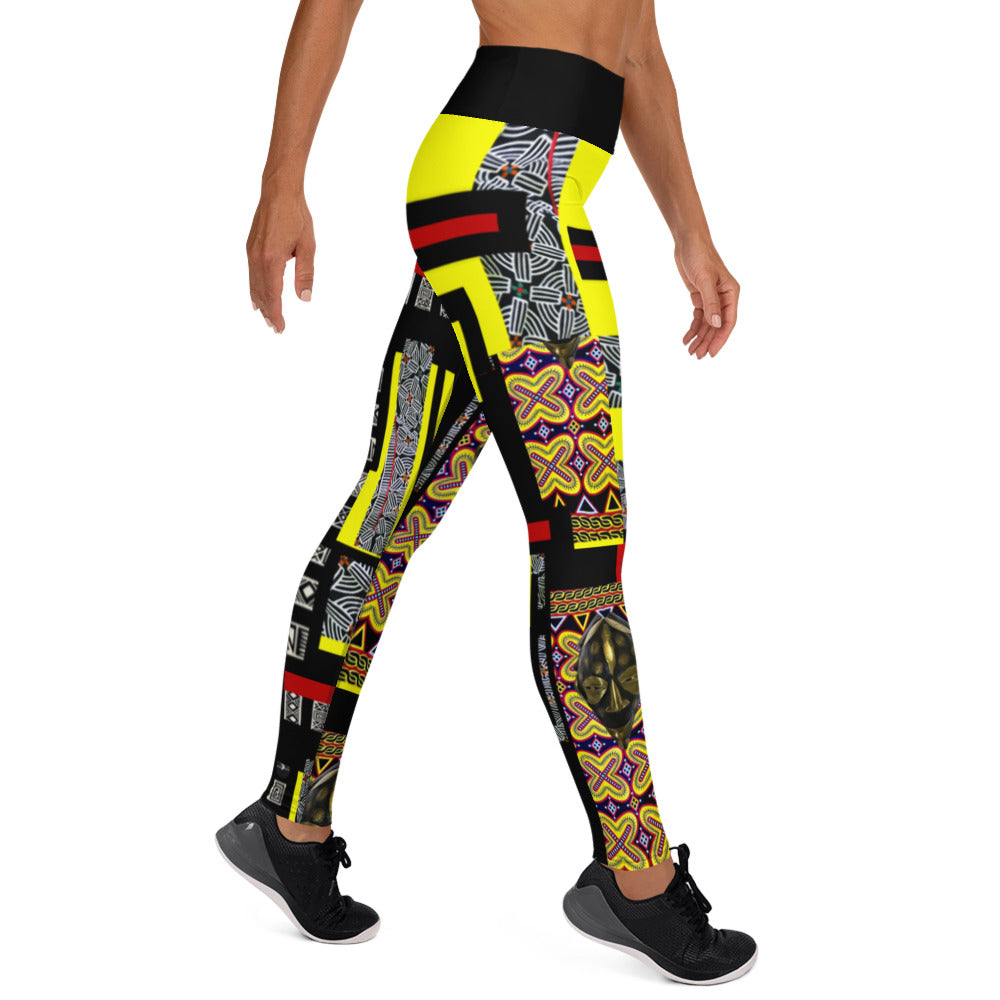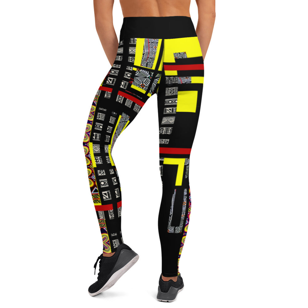 Origen Destination |On-Arrival Point of Origɛn African Symbol-inspired Yellow/Black Yoga Leggings
