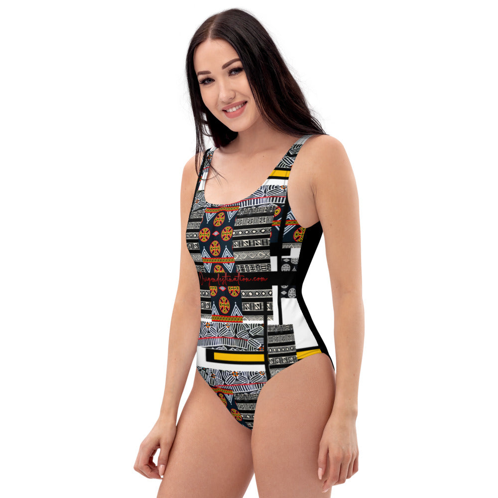 Origen Destination |On-Arrival Point of Origen African Symbol-inspired One-Piece Swimsuit