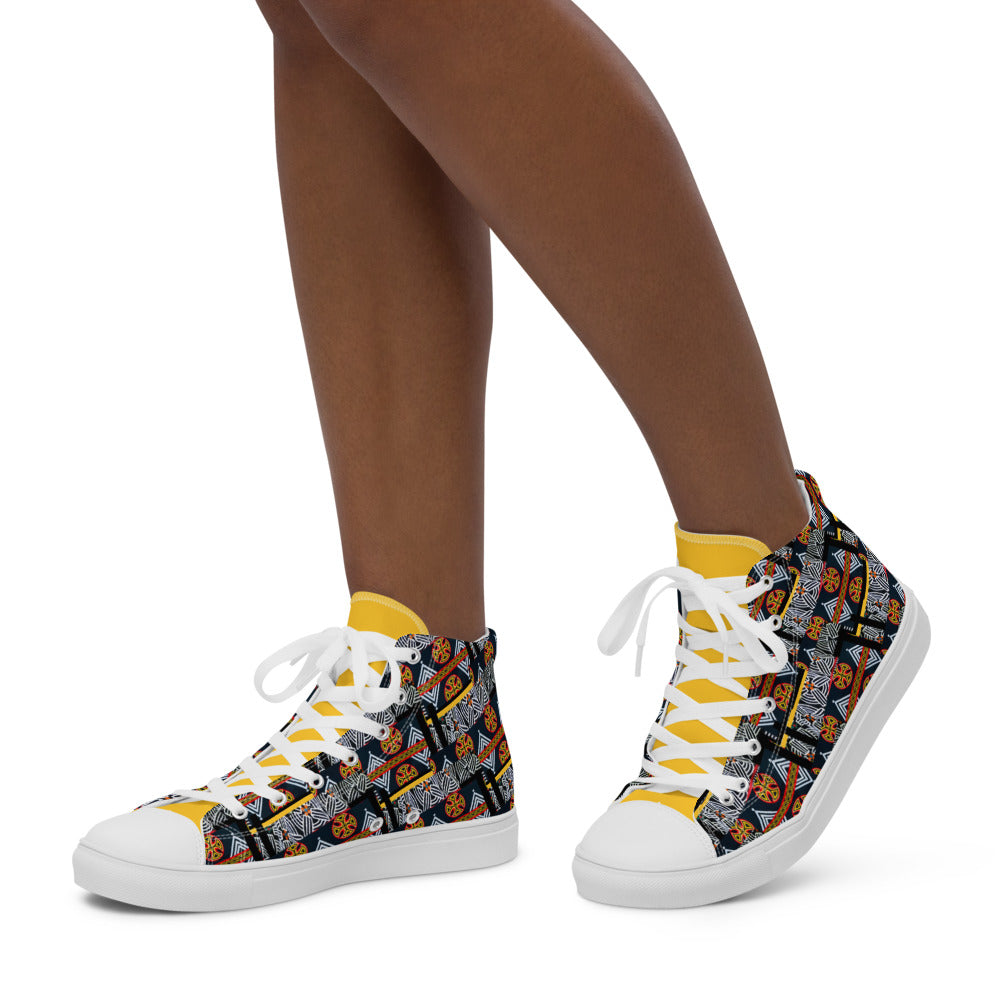 Origen Destination |On-Arrival Point of Origen African Symbol-inspired Women’s high top canvas shoes