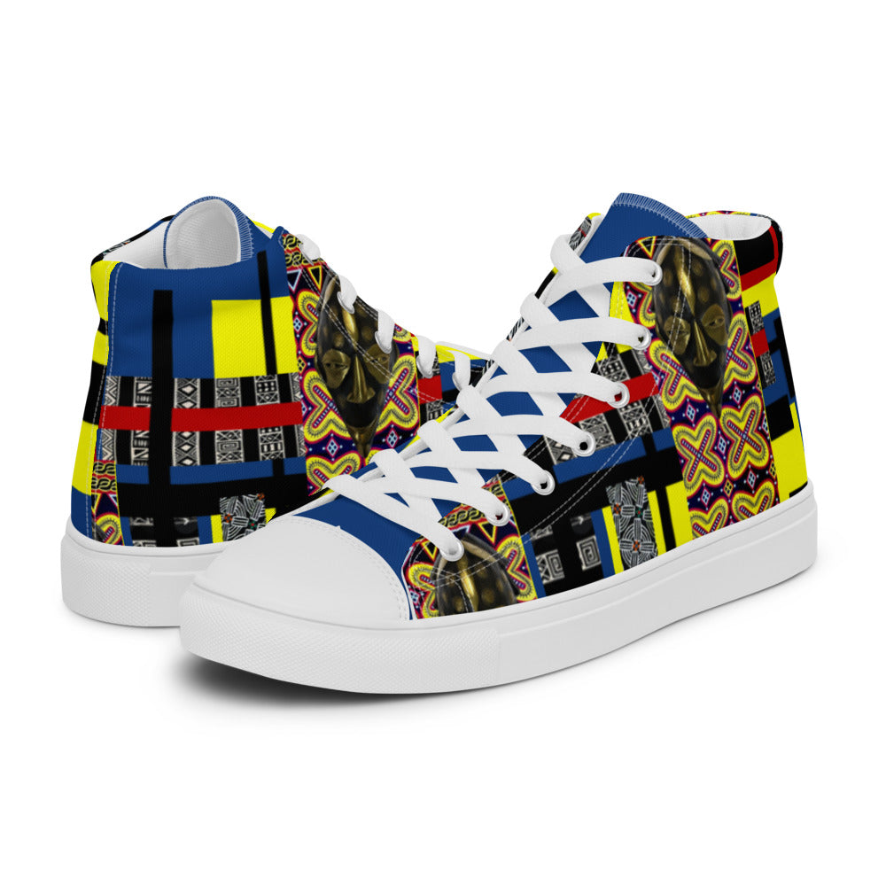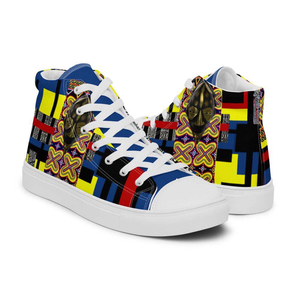 Origen Destination |On-Arrival Point of Origen African Symbol-inspired Women’s high top canvas shoes