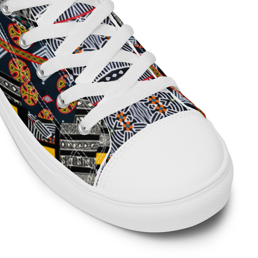 Origen Destination |On-Arrival Point of Origen African Symbol-inspired Women’s high top canvas shoes