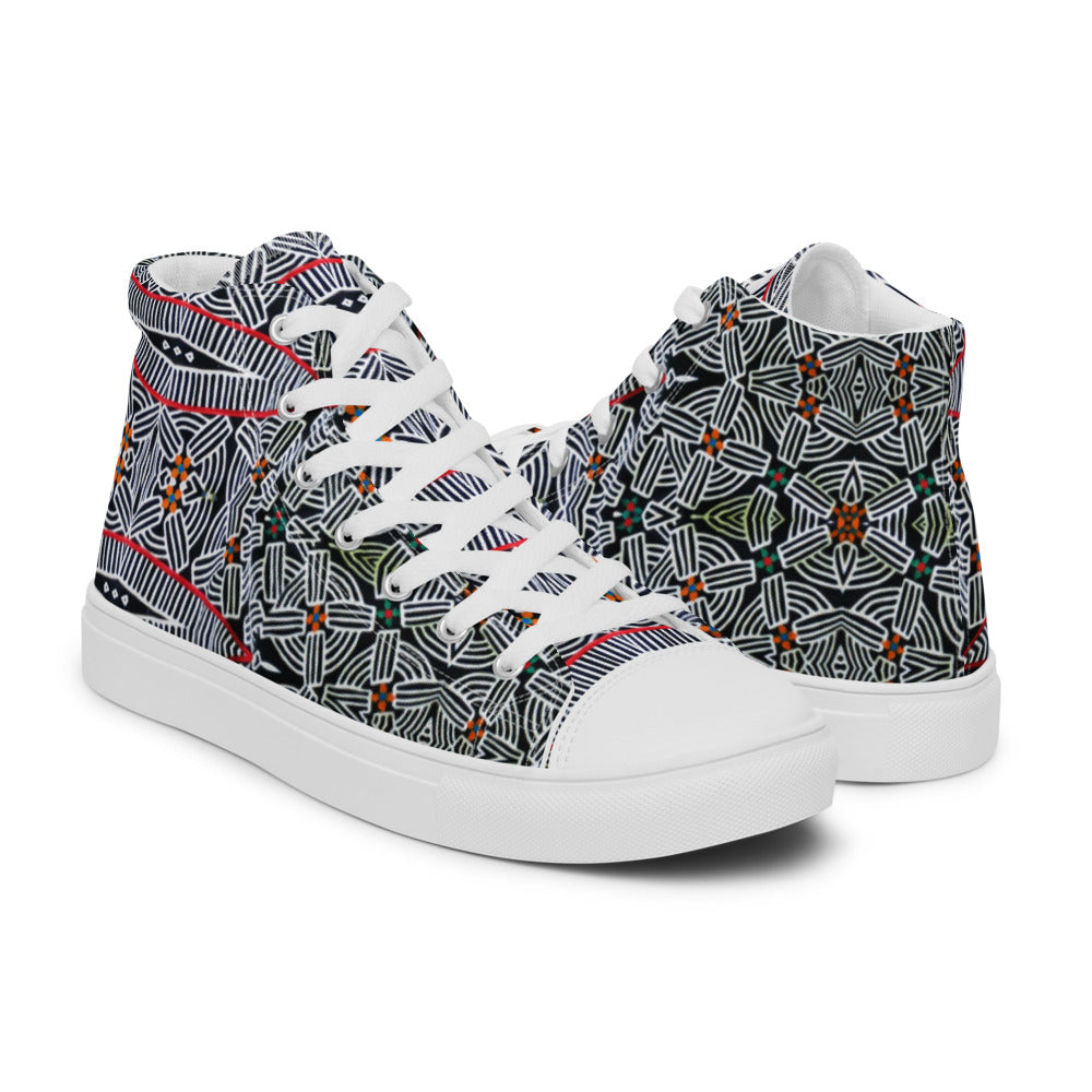 Origen Destination |On-Arrival Point of Origen African Symbol-inspired Women’s high top canvas shoes