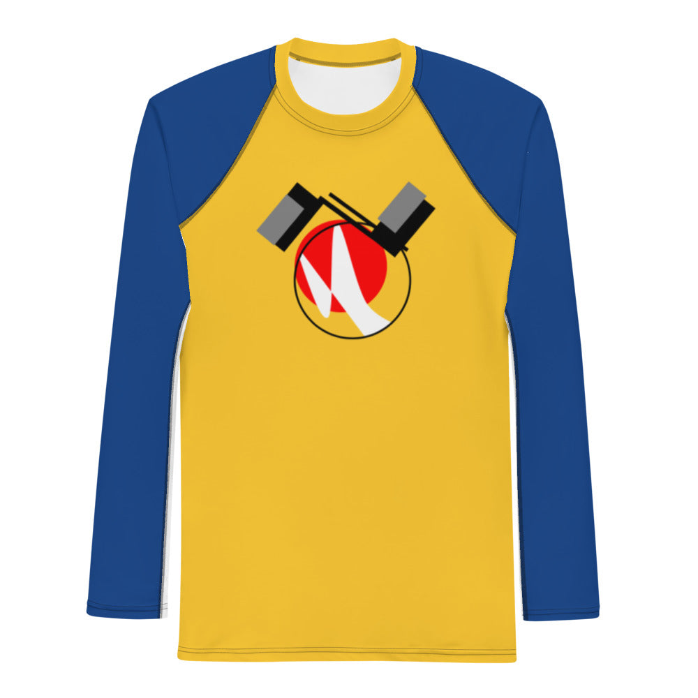 Origen Destination |On-Arrival Point of Origen Symbol-inspired Men's Yellow/Blue Rash Guard