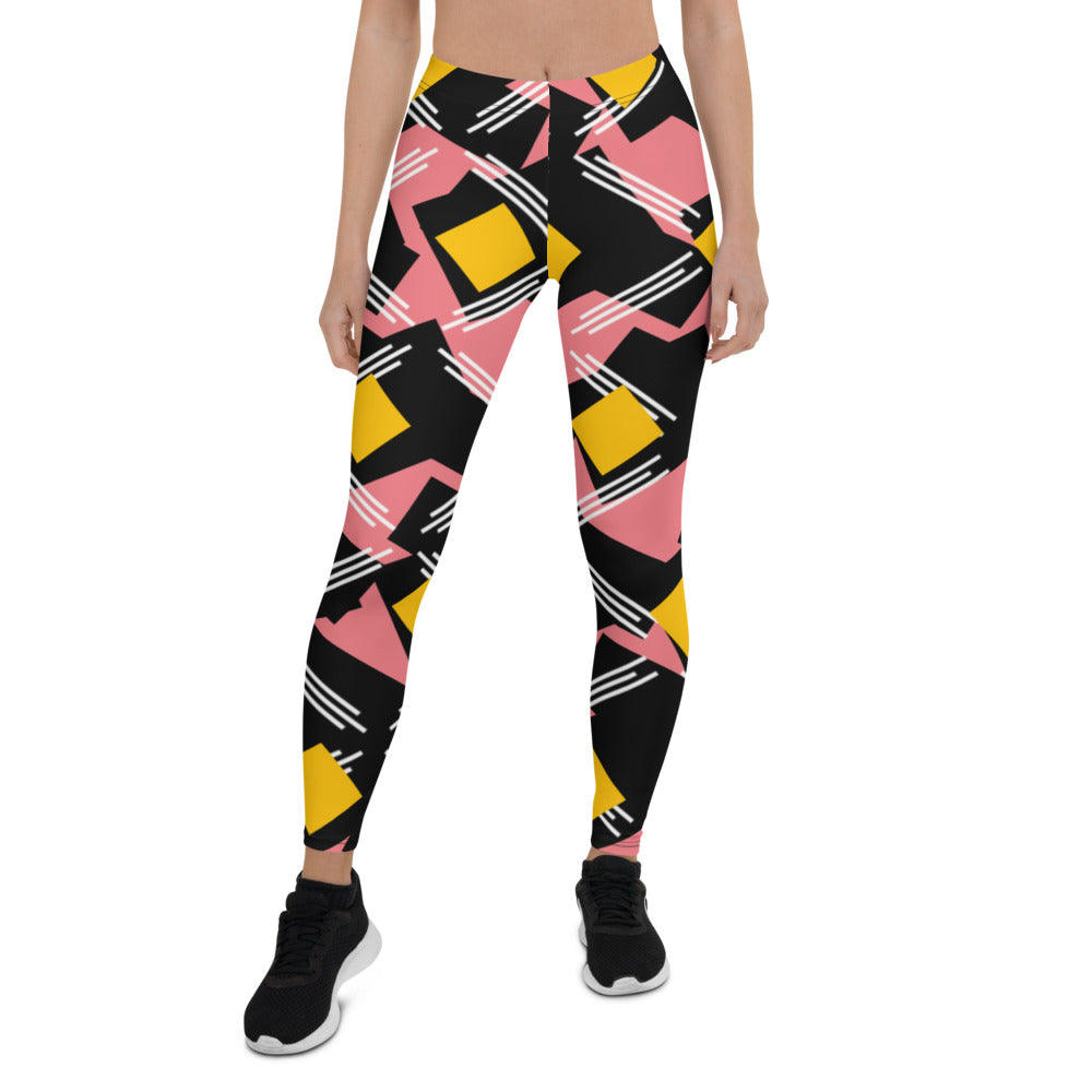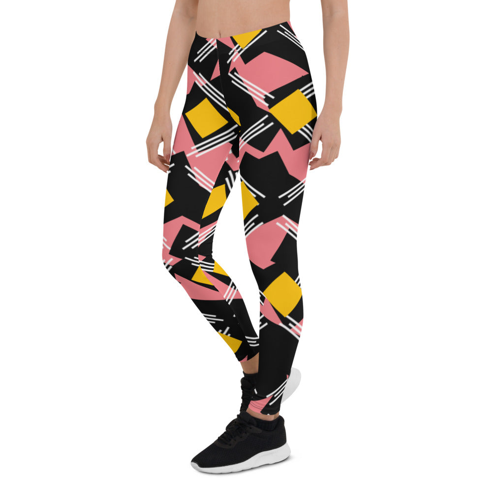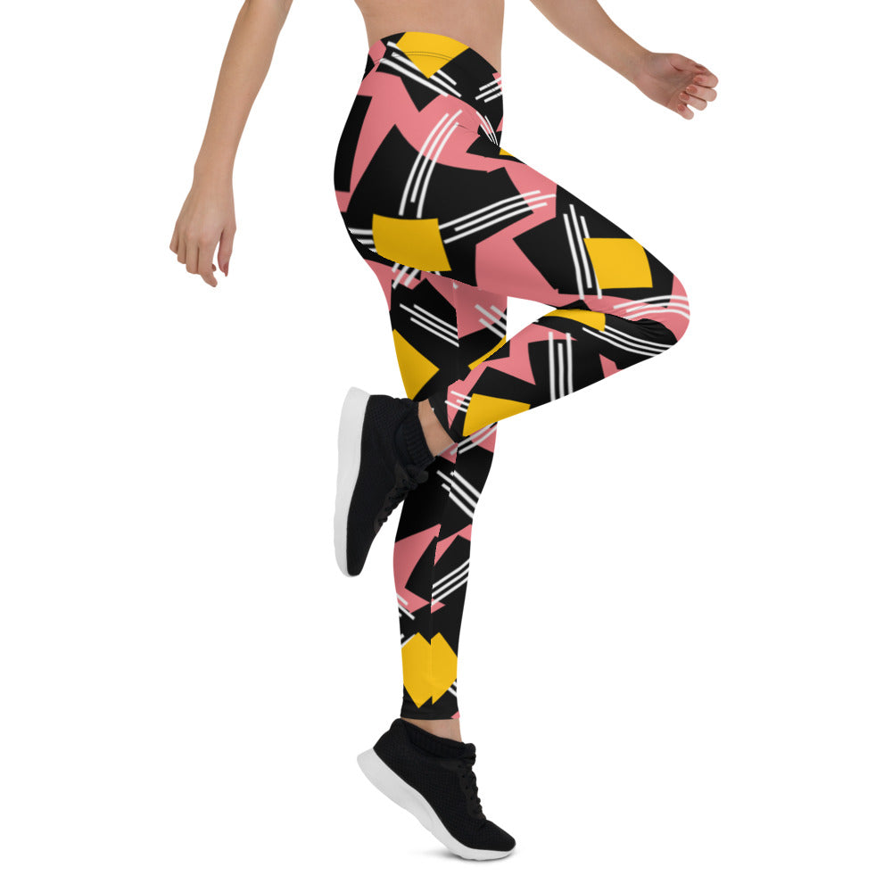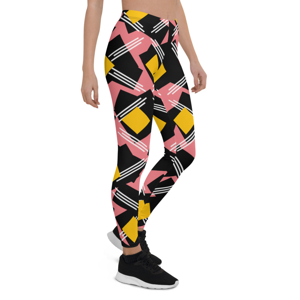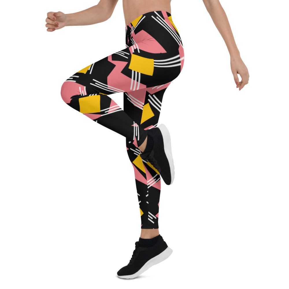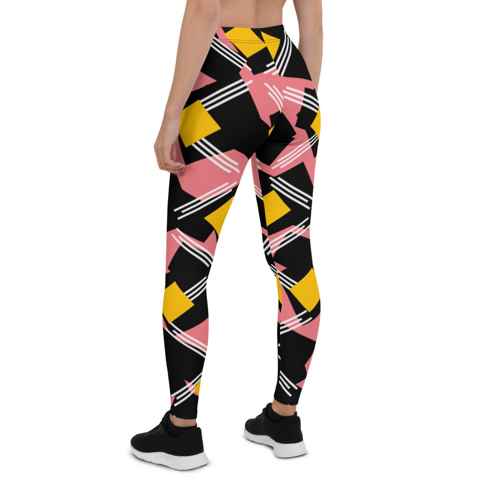 Origen Destination |On-Arrival Point of Origen Symbol-inspired Women's Pink/Black/Gold Striped Leggings