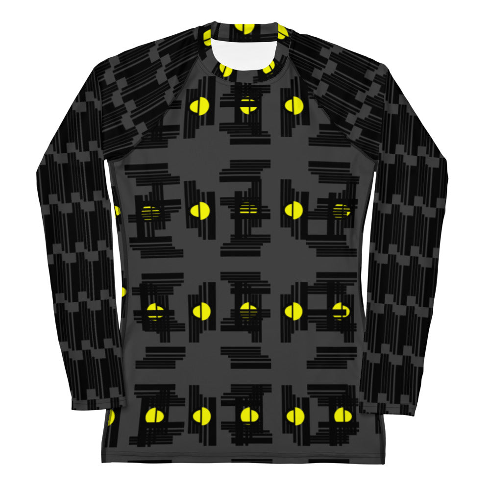 Origen Destination |On-Arrival Point of Origen Women's Gray/Yellow Sphere Symbol-inspired Rash Guard